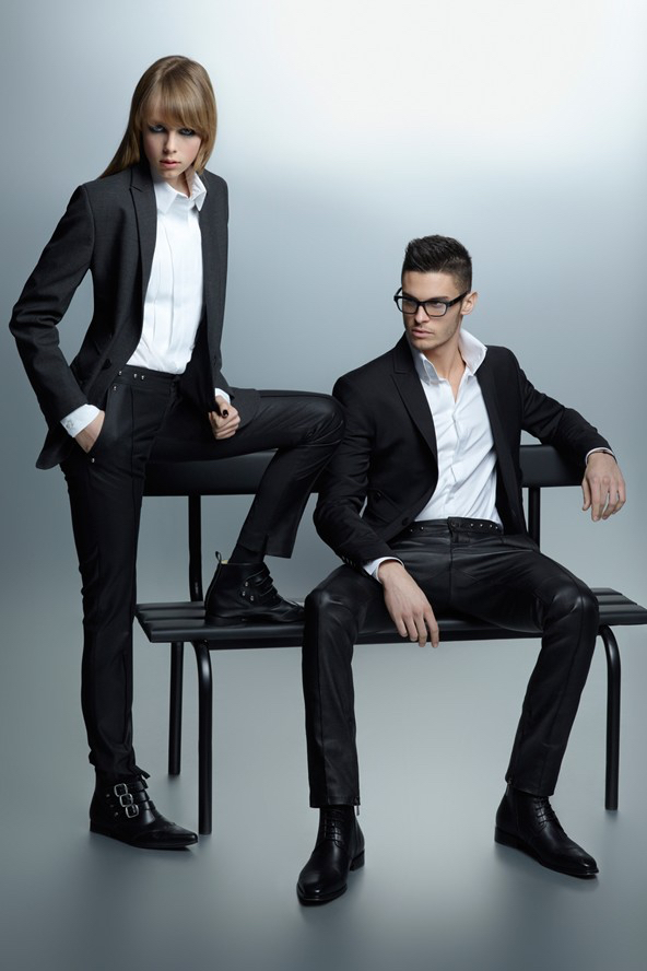 Special One–Karl Lagerfeld captures again his favorite male muse, model Baptiste Giabiconi, for the fall/winter 2012 campaign of his eponymous label. Joined by British model Edie Campbell, the pair are photographed once more against a simple and essential grey background, displaying some of the slick and androgynous looks created by the designer for next season.