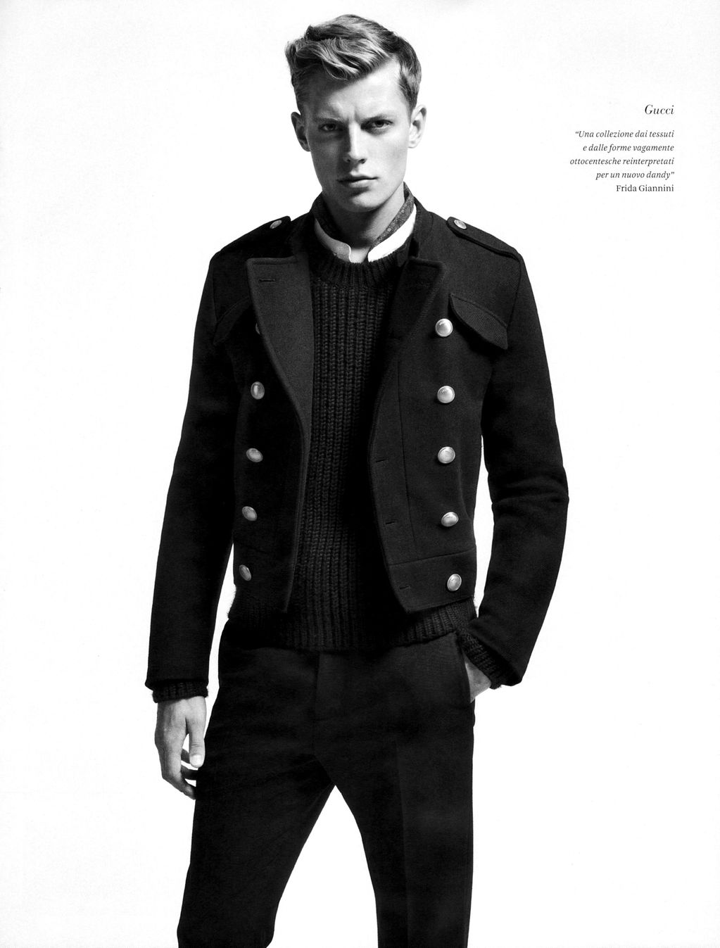 The Italian Way-Styled by Emil Rebek in some of the most prestigious Italian menswear labels, models Bastian Thiery, Janis Ancens, Jesse Shannon, Nicolas Ripoll and Vincent LaCrocq grace the pages of L’Officiel Hommes Italia’s latest issue. Captured in black & white studio images by the lens of Pablo Arroyo, the models emphasize elegant and refined fall/winter 2012 styles. From Gucci’s new dandy to Valentino’s couture-inspired silhouettes, the models prove once again the innate style and elegance of Italian fashion designers.