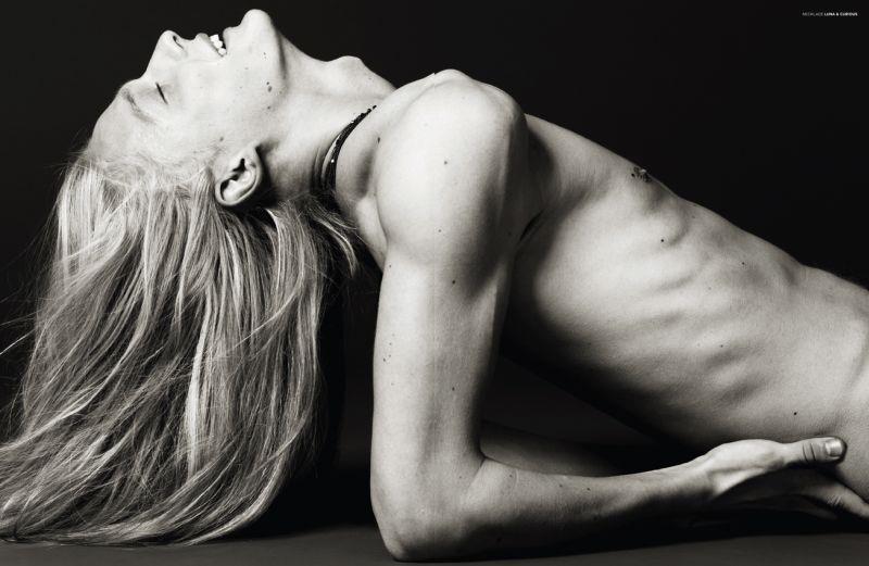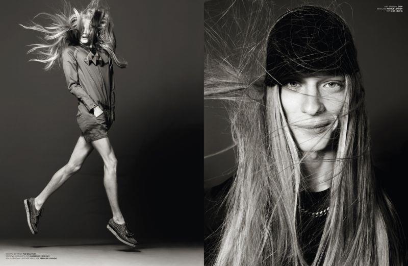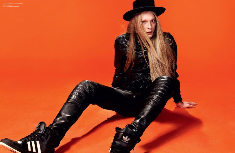Androgyny-Photographer John-Paul Pietrus and stylist Dean Hau team up for a fashion story featuring Select model Eugeniy Sauchenka published in the pages of Seventh Man magazine. Captured in minimal studio portraits, the blond model poses against a vivid orange background or in sophisticated black & white images sporting pieces from the likes of Dior Homme and Burberry Prorsum, or simply making his blond locks floating in the air.