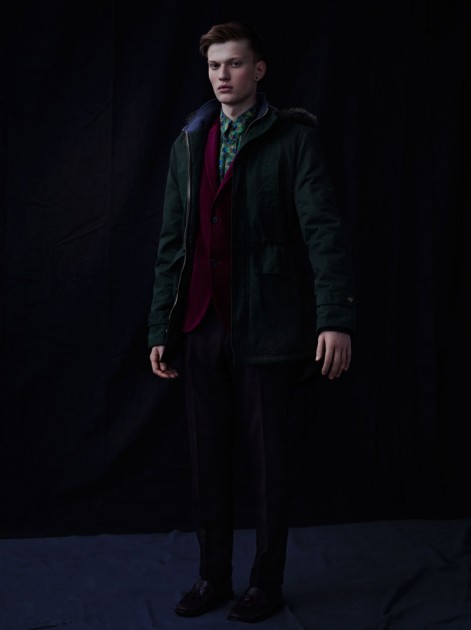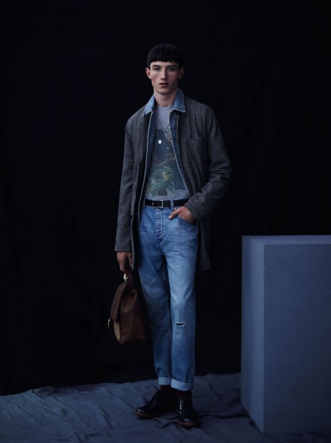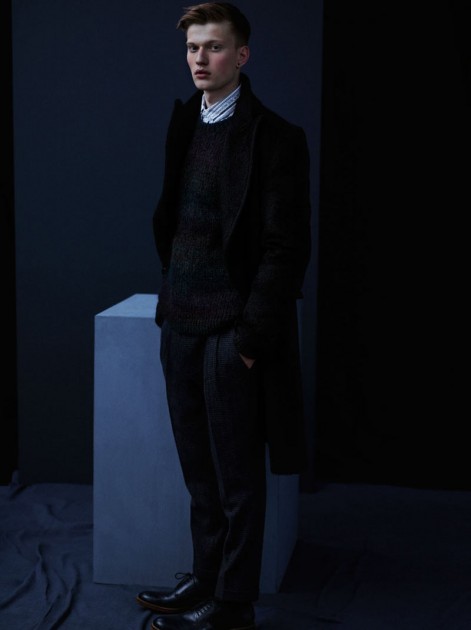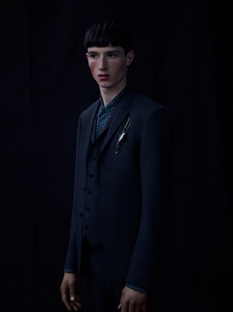 A Dark Spin–Laurence Ellis (Visual Artists) teams up with stylists Stevie Westgarth (D+V Management) and Harry Lambert for the fall/winter 2012 lookbook of Topman. The dark collection boasts a tasteful edge as the label’s stable of modern-cut garments are furnished in somber hues. Modeled by Jackson Rado (Premier), Joseph Ferns (Elite London) and Jester (Select), the range tackles contemporary tailoring for today’s youth with knitwear, denim and outerwear coming together featuring a splash of prints for added character. / Photo assistance by Khalil Musa and Lena Emery. Style assistance by Helen McGuckin. Casting by Eddy Martin. Set design by Georgina Pragnell. Grooming by Mari Ohashi. Grooming assistance by Yuka Hirata.