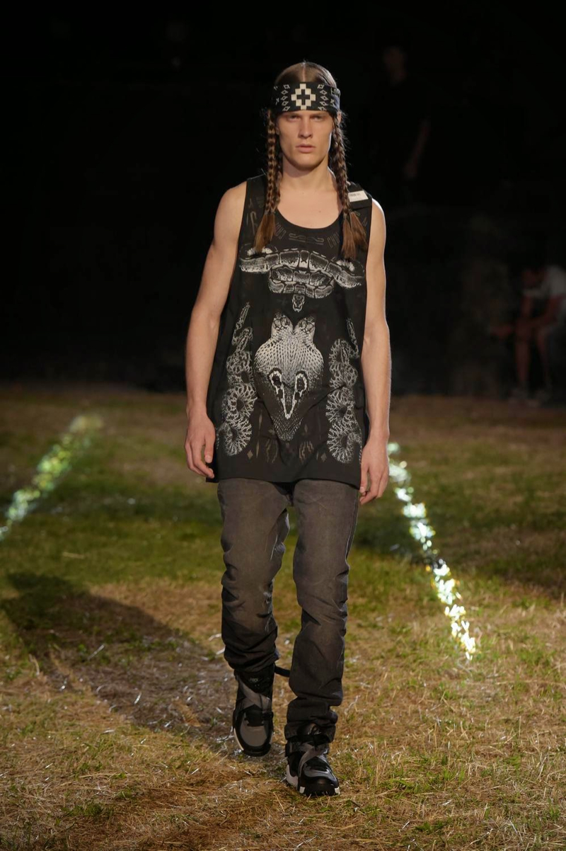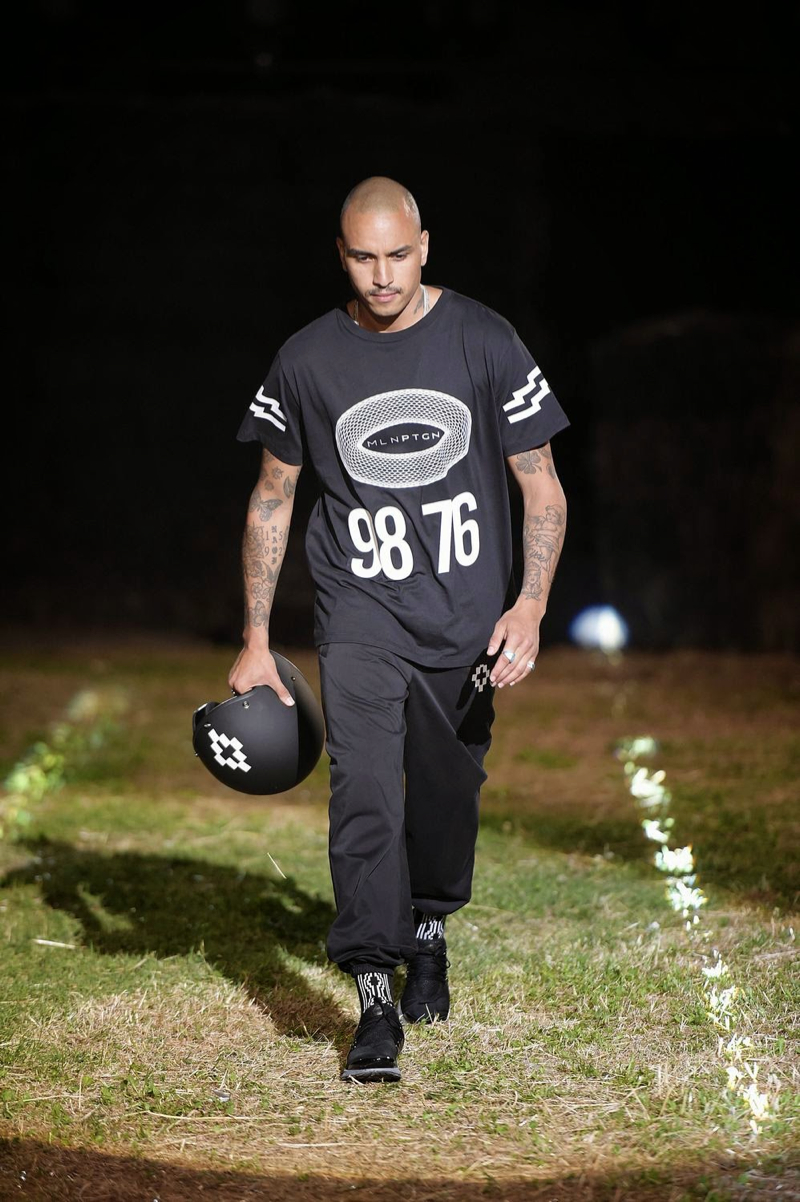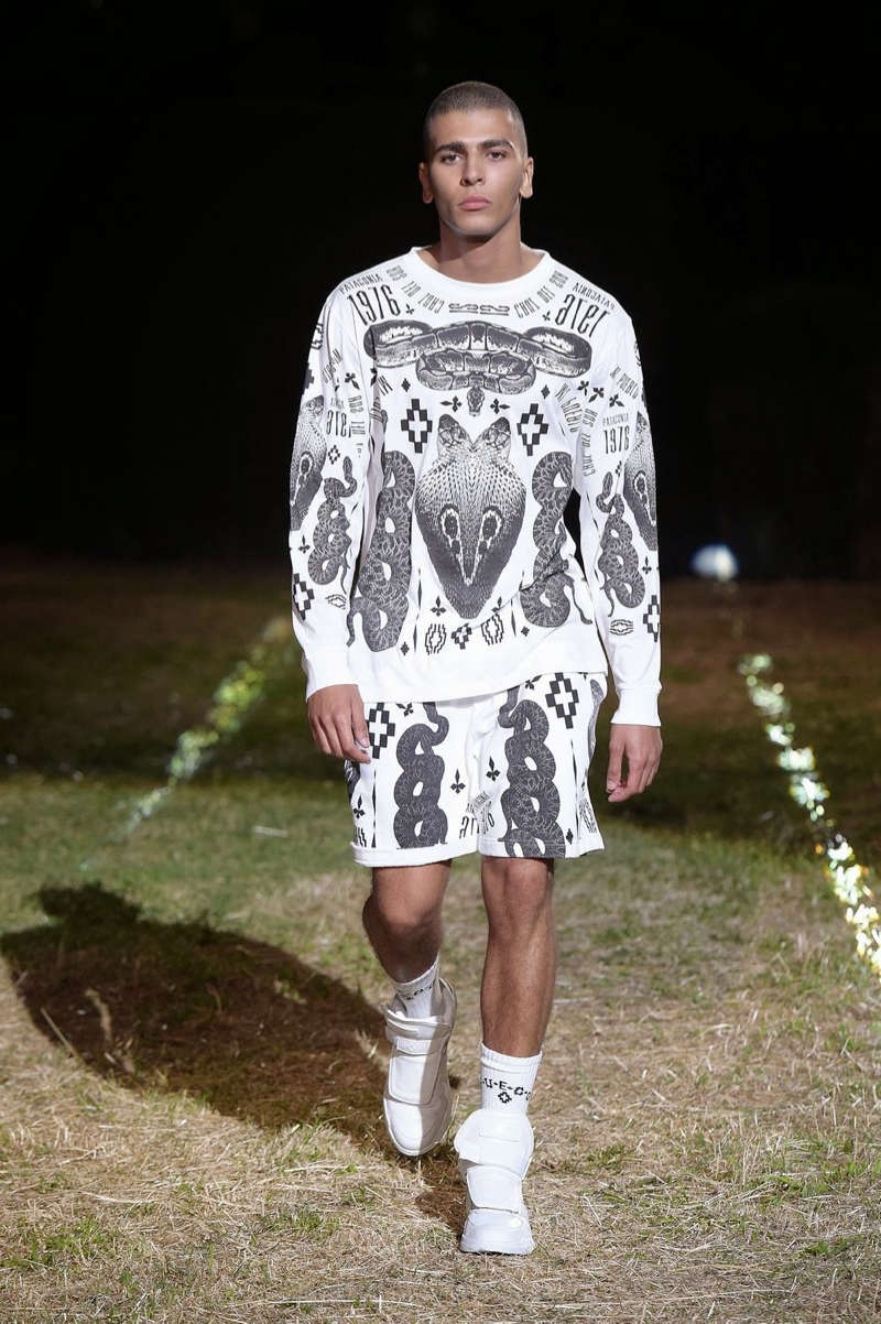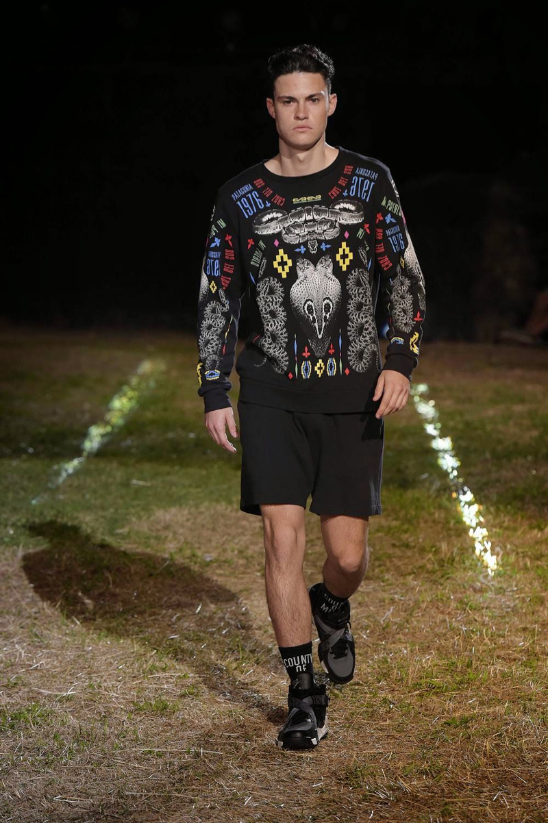 Marcelo Burlon County of Milan Spring/Summer 2015–Marcelo Burlon County of Milan presented for the first time at Pitti Uomo, offering a look at spring/summer 2015. Burlon seems to elevate the label’s signature graphics with the use of leather this season. Sporty at heart, the new collection boasts a rebellious attitude, making a loud statement with oversized silhouettes and invasive graphics.
