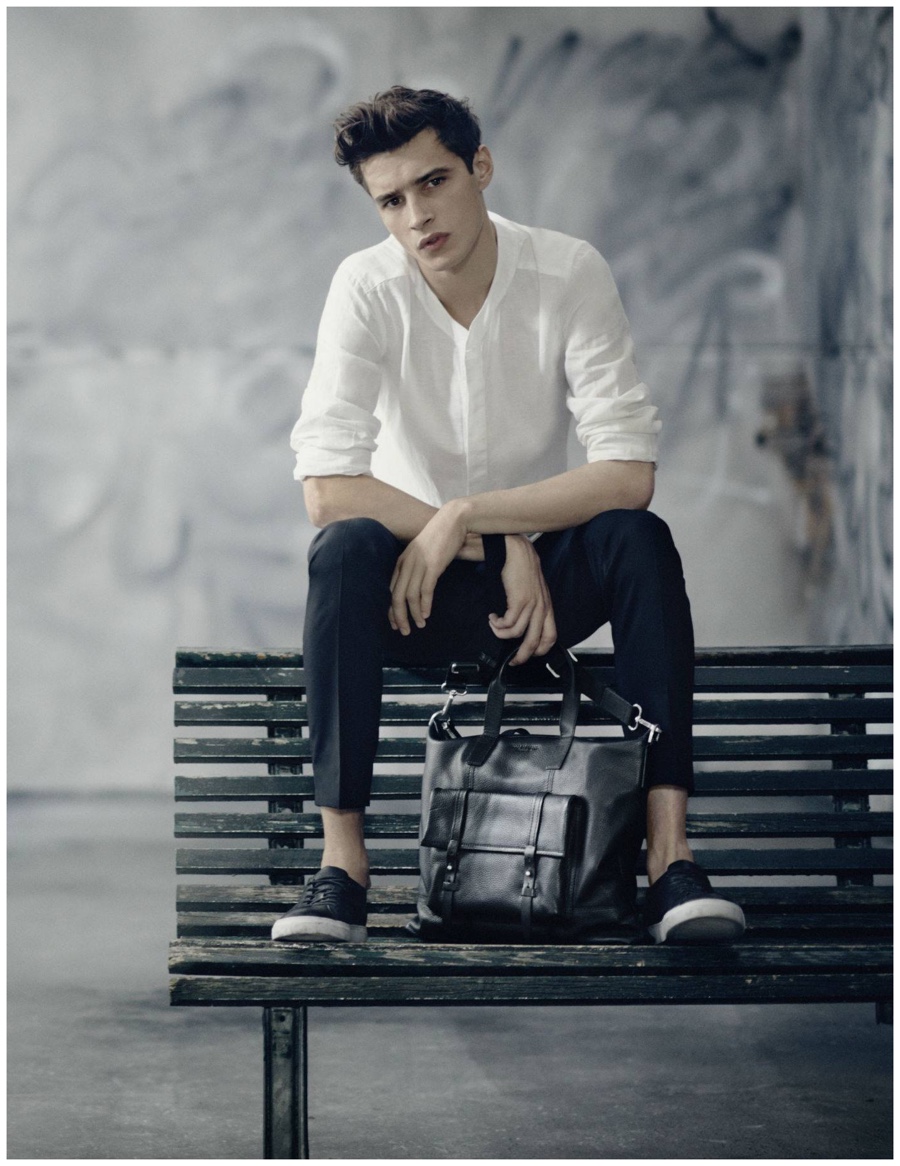 Chic Casual: So you want to go casual, but your look still needs to be professional. Go for a clean white shirt sans collar. Look for mandarin collars and henley style dress shirts. Paired with navy or black, slim-cut pleated trousers and dark sneakers, you’ll be an instant professional style icon. See more looks from Tiger of Sweden.