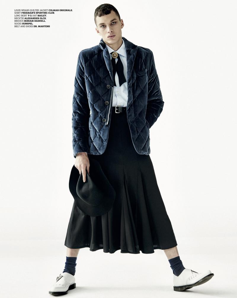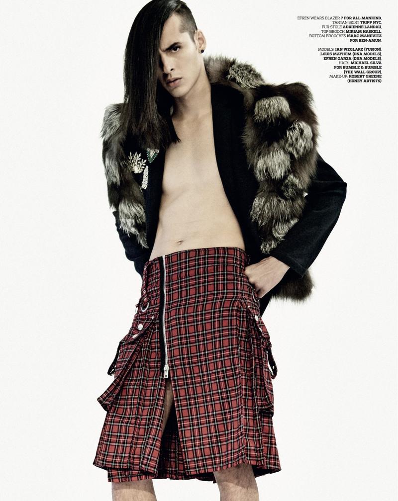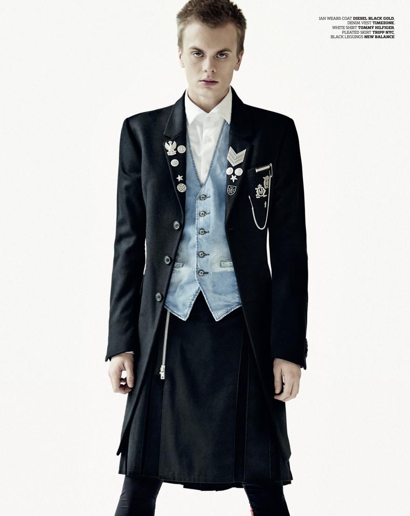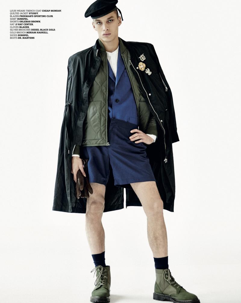 Photographer Kevin Sinclair and stylist Jessica Bobince join creative forces for an editorial commissioned by Sportswear International. Tackling military-style fashions with a fresh modern twist, Bobince delivers a flamboyant spring flair. Models Ian Weglarz, Louis Mayhew and Efren Garza are front and center for the occasion, wearing bold, gender-bending ensembles.