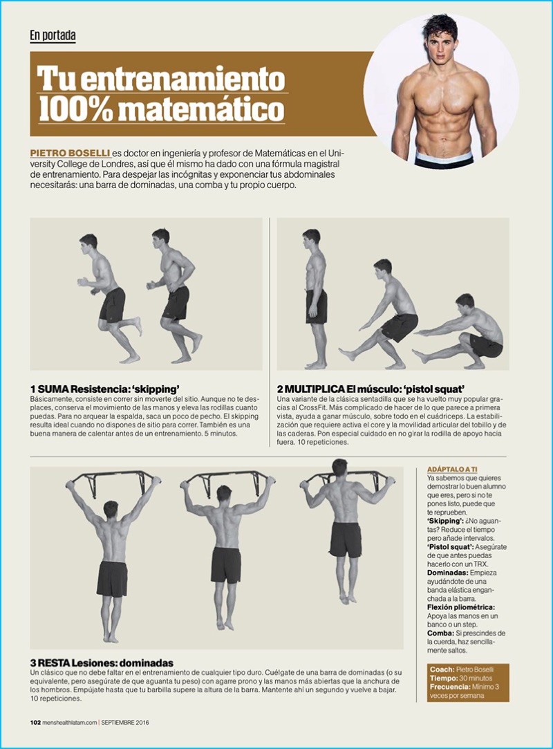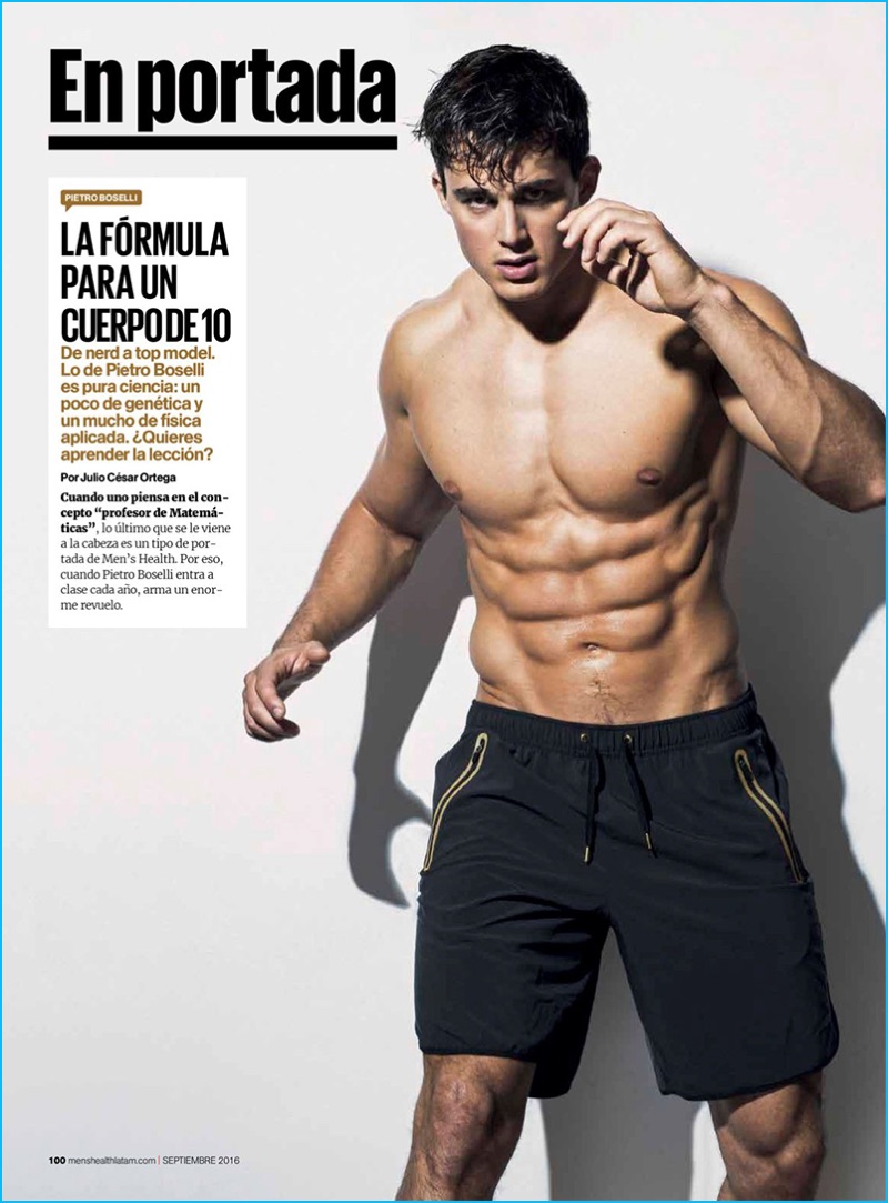 Pietro Boselli snags the cover story for two editions of Men’s Health for September 2016. The Italian model shows off his world famous six-pack as he graces the covers of Men’s Health España and Men’s Health Mexico. Connecting with the magazines, Pietro shares his exercises for staying fit. Included in the model’s regular workout are pistol squats and skipping. Gaining worldwide attention for his physique, Pietro also appeared in an issue of Men’s Health China for an active-themed editorial.