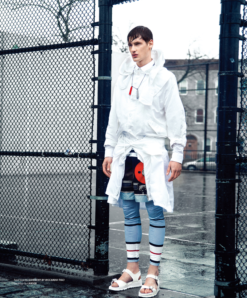 Playing the Field-Wearing sporty summer fashions for the June/July issue of Essential Homme, model Tino Thielens is photographed by Kevin Sinclair. Posing for photos in studio and at the local park, Tino is styled by Alex Van der Steen, sporting looks from labels that include Prada, Givenchy and 3.1 Phillip Lim. / Makeup by Fumiaki Nakagawa. Hair by Takuya Sugawara.