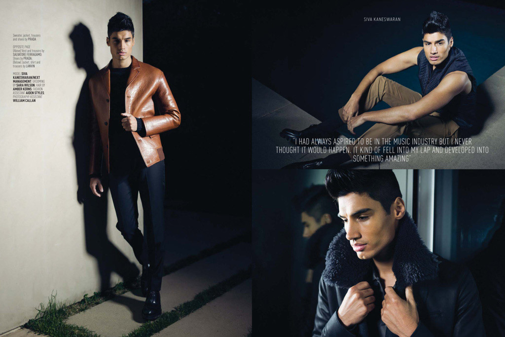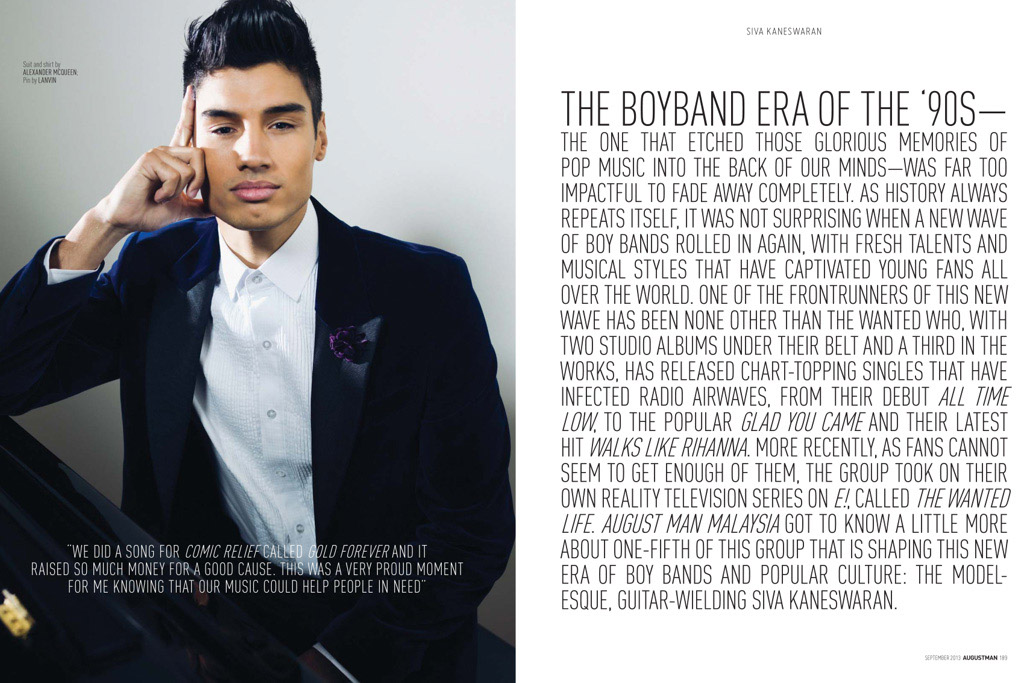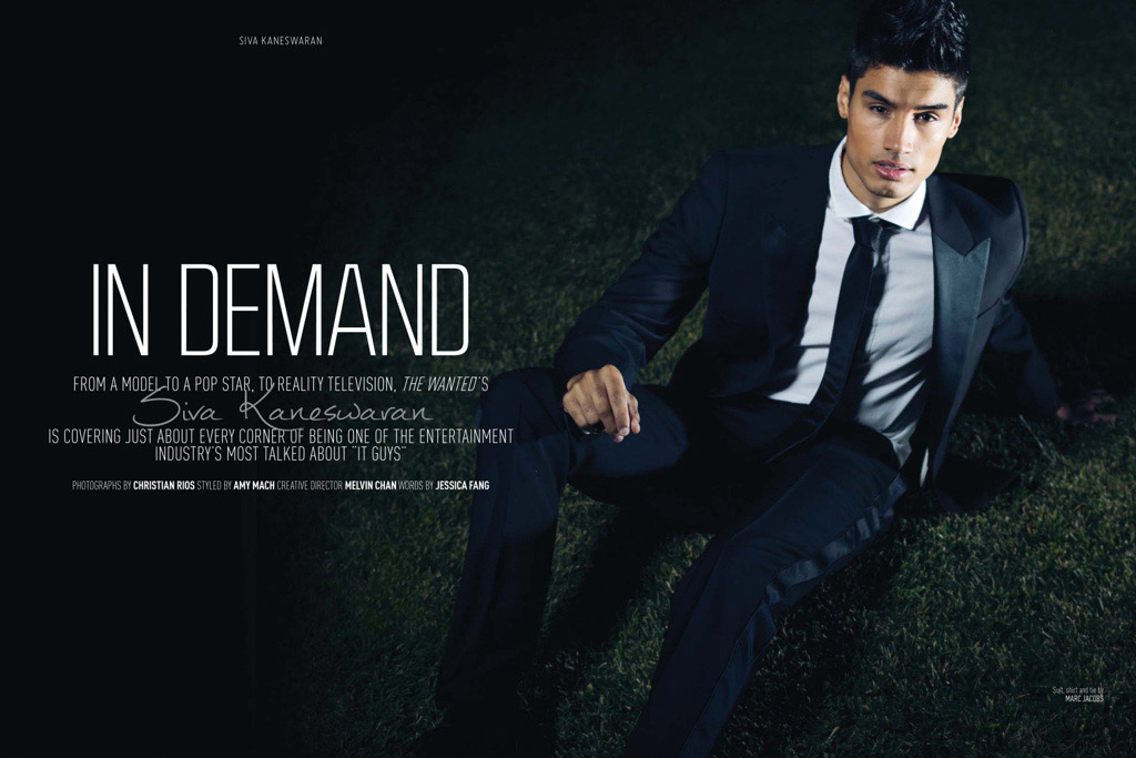 In Demand-Siva Kaneswaran of The Wanted puts the mic down for a sharp editorial spread for the September issue of August Man. Revealing his modeling talent, Kaneswaran substitutes his boy band uniform for crisp, clean-cut suits by the likes of Prada, Salvatore Ferragamo, and Lanvin. Photographer Christian Rios works with Siva, exploring a refined maturity within the singer. / Styling by Amy Mach.