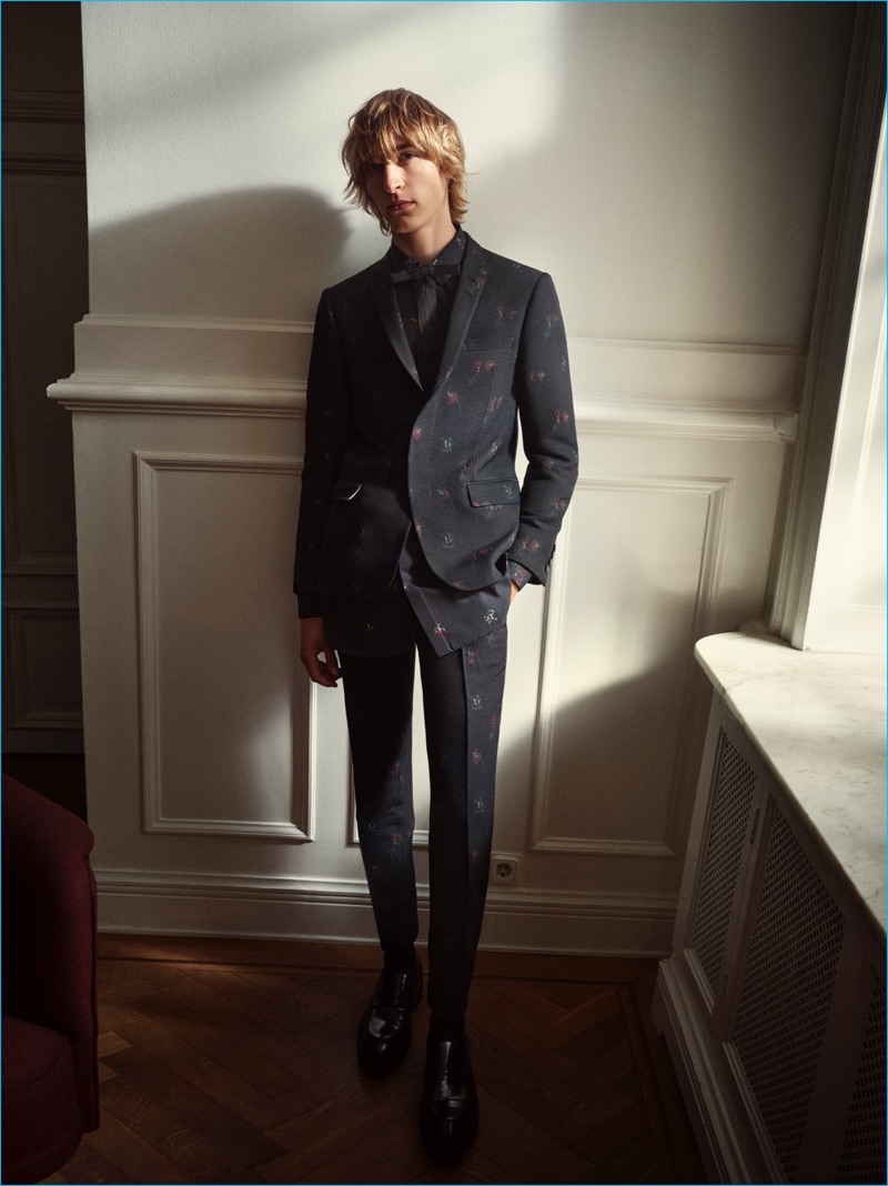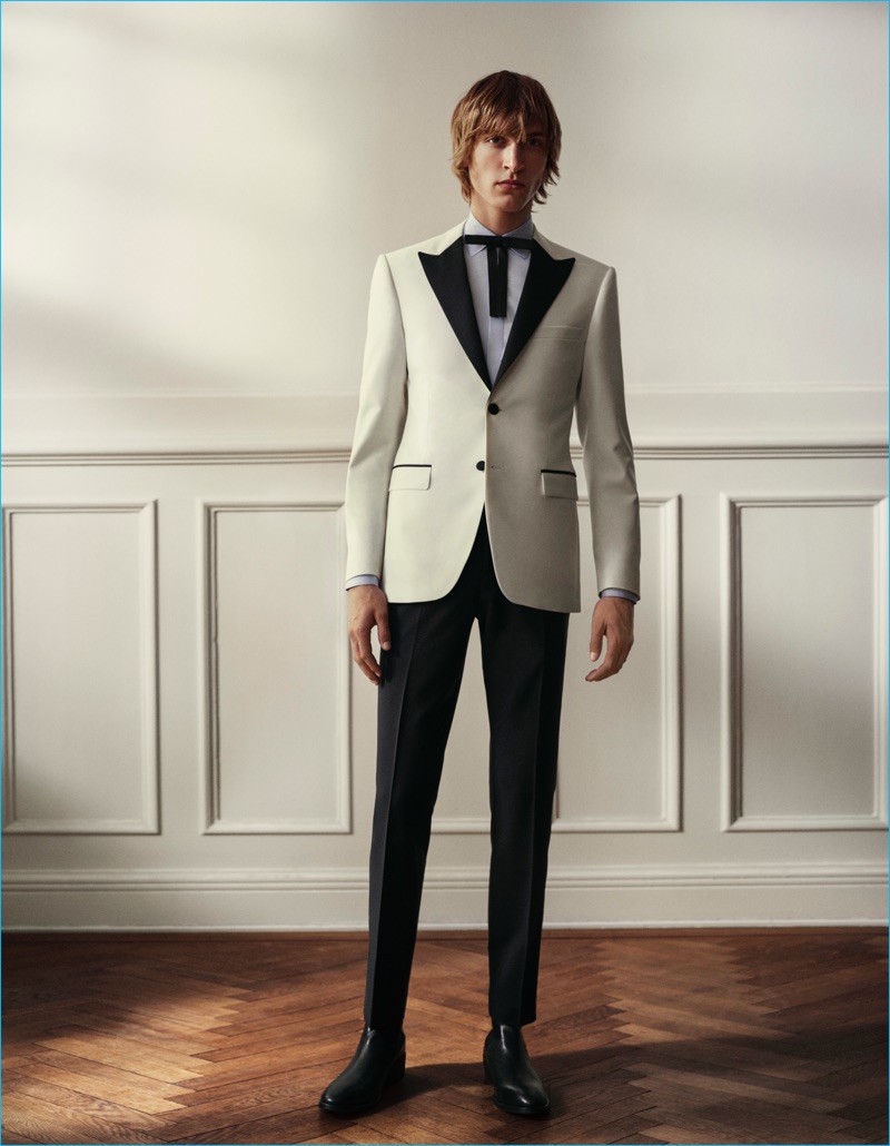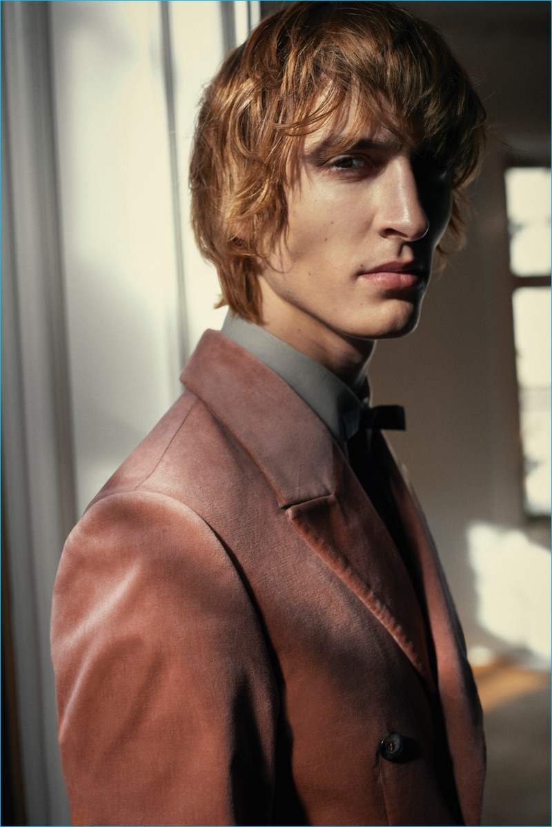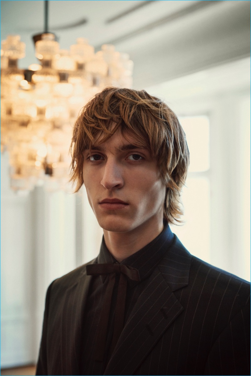 Highlighting Tiger of Sweden’s stylish strengths, Tim is pictured in double-breasted jackets, pinstripe suiting, and eveningwear. Dusty hues and soft prints lend a sophisticated quality to the label’s latest wears. On a more casual note, trendy pieces such as the bomber jacket and shearling outerwear are explored with a luxe point of reference.