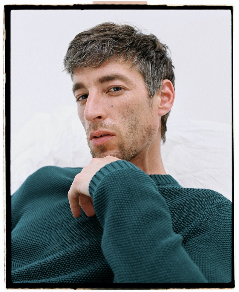 Relaxing, Joel Frampton sports a textured sweater from Adolfo Dominguez's spring-summer 2021 men's collection.Pin