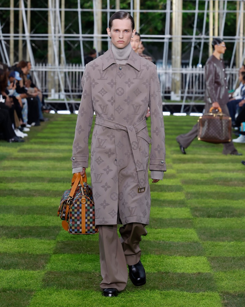 Known for his bold use of prints, this season sees the debut of ‘damoflage,’ a clever fusion of Louis Vuitton’s iconic Damier pattern with camouflage, reinvented as ‘Snake-o-Flage,’ which nods to Python graphics.
