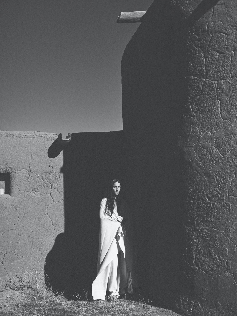 Stylist Giovanni Dario Laudicina grounds this season’s fashions with a neutral color palette. Laudicina takes to El Rancho de las Golondrinas, also known as the Ranch of the Swallows, where he styles Cherokee Jack and Sam Mallos in inspiring spring ensembles. Liwan and Hermès are among the brands represented, as is Acne Studios.
