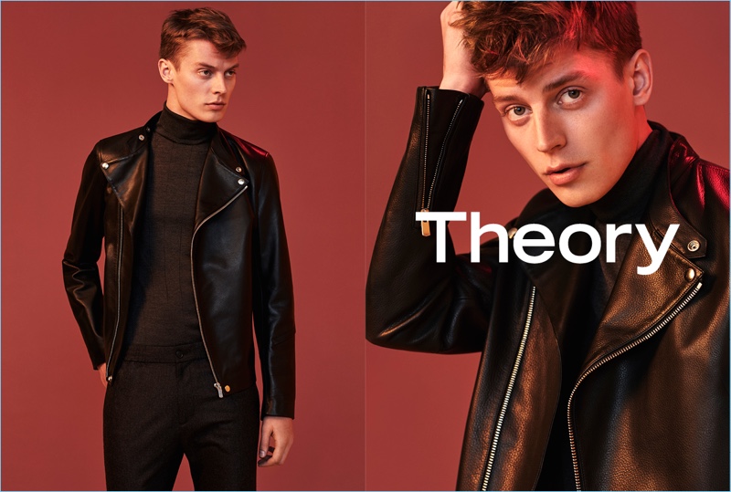 Theory enlists models Janis Ancens and Xavier Buestel as the stars of its fall-winter 2017 campaign. Sasha Pivovarova also appears in the advertisement. Posing for striking studio images, the models connect with photographer Erik Torstensson. It’s here that Janis and Xavier clean up in sharp essentials for the season. The models sport key items such as the leather biker jacket, tailored suit, and chic turtleneck.