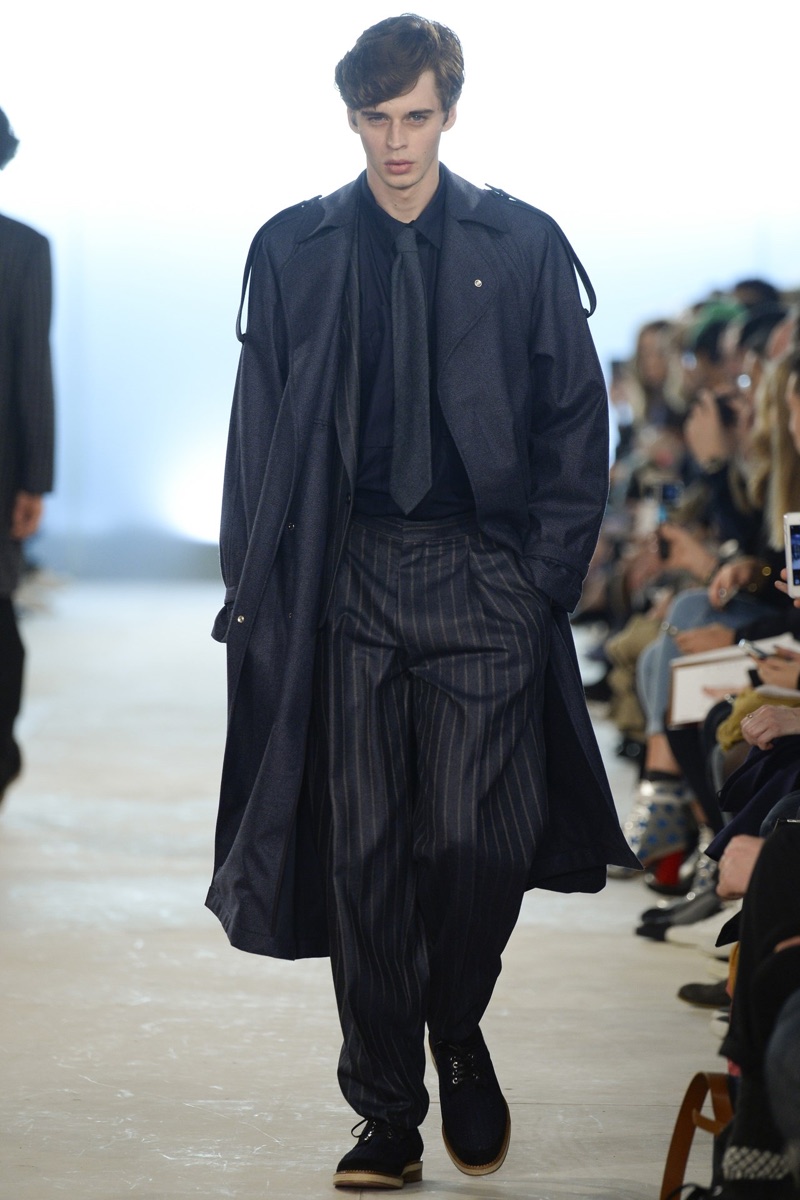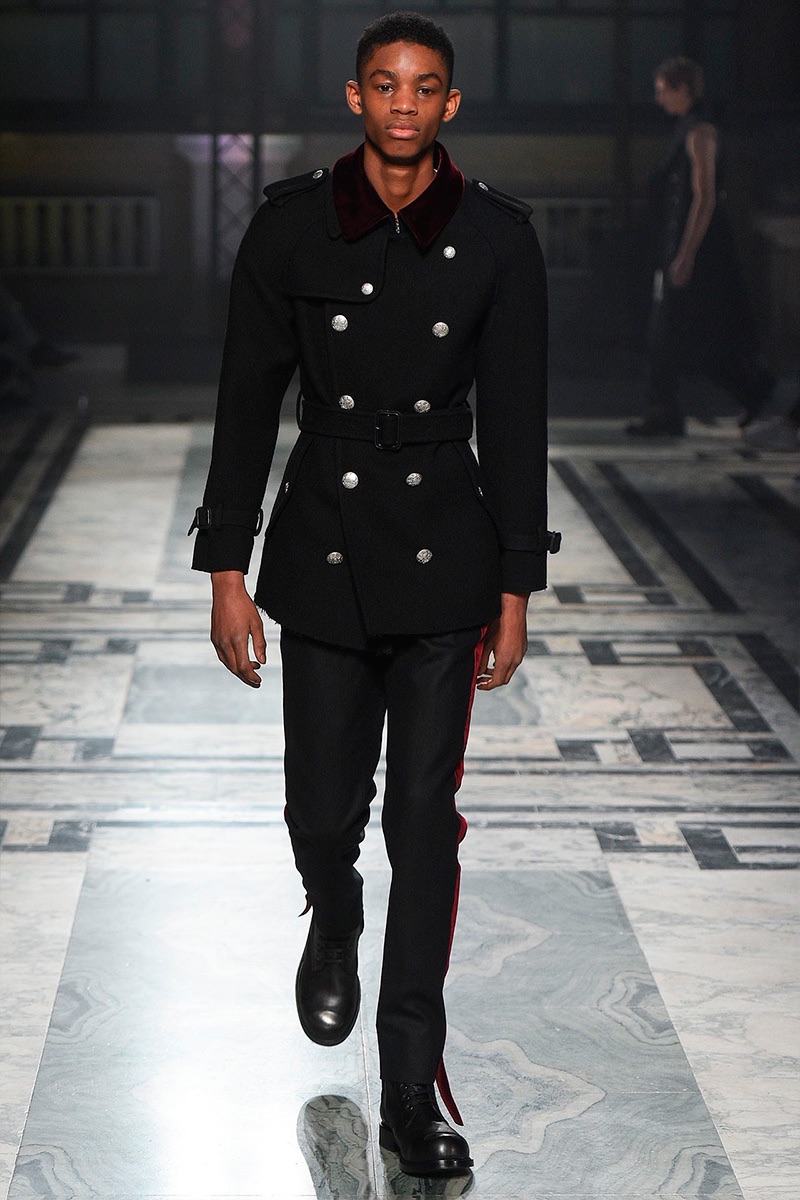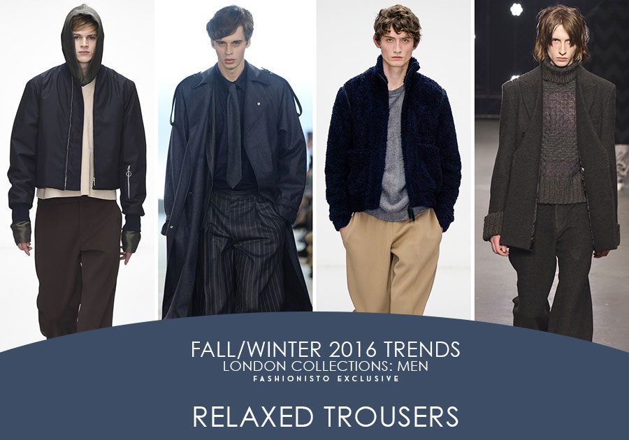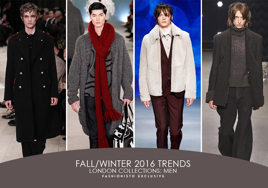 Surveying the fall-winter 2016 shows unveiled during London Collections: Men, amongst loud numbers were easy retail standouts. Shaping the trends for the season, silhouette and textiles came into play. From the sharp lines of military-inspired overcoats to relaxed, wide-cut trousers, London served dashing fall efforts.