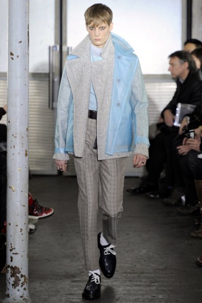 School of Lim–3.1 Phillip Lim made the return to its youthful zest for the label’s Parisian show. Reinventing influences from the sixties, designer Phillip Lim churned out desirable separates at an unwavering moment’s notice. Laced with fun, baseball jackets, transparent duffel coats and sleeveless suit numbers contributed to the collection’s identity. Embracing a digital motif and putting his boys in creepers, Lim produced an army of angst-ridden style aficionados. Parading a dominant palette of white with bursts of varied colors, pleated fitted trousers fit right in alongside an eclectic convergence of styles for a rewarding fall season.