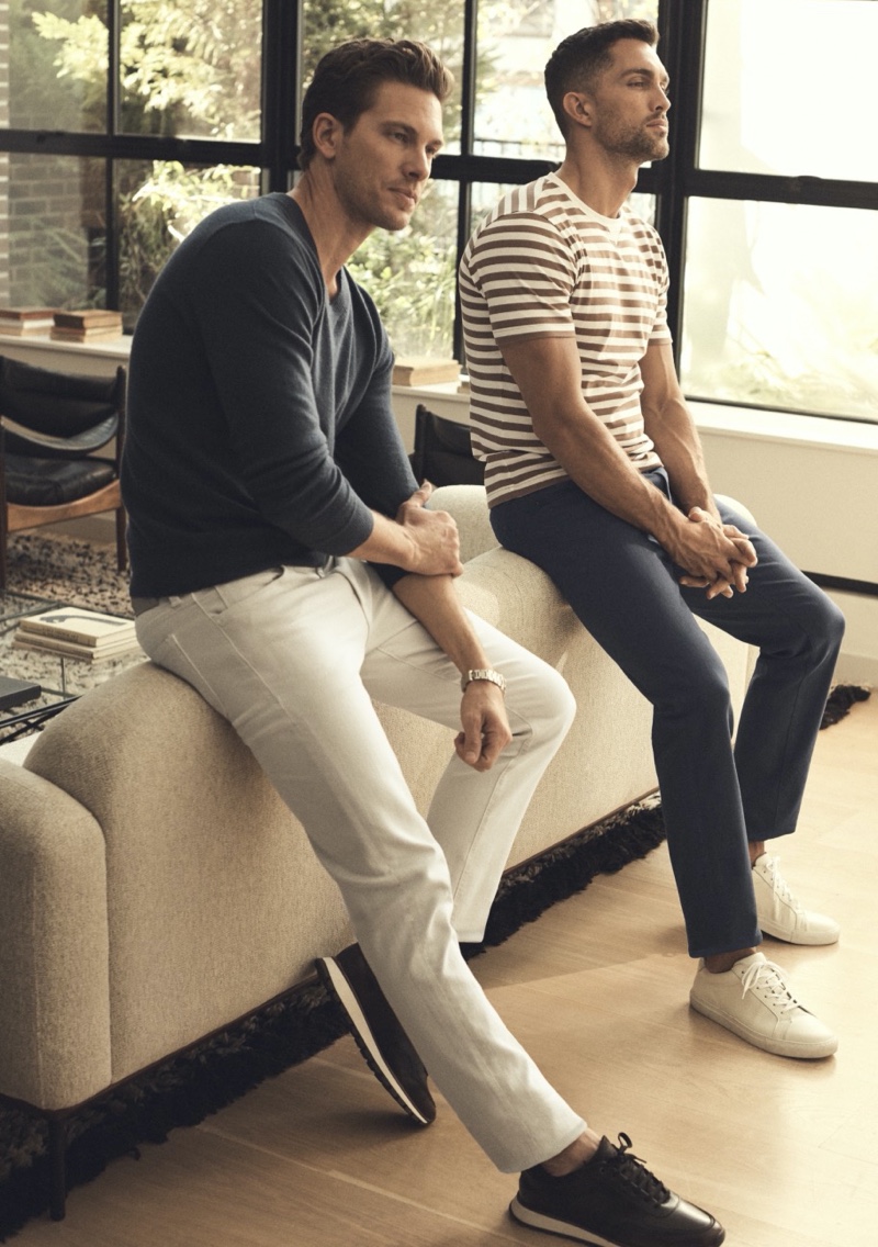 34 Heritage delivers another season of classic style with its spring-summer 2020 collection. The brand enlists models Tobias Sorensen and Adam Senn to star in its new lookbook. Tobias and Adam retreat indoors for the occasion. The models come together in smart looks styled by Jim Moore. Highlights include 34 Heritage’s light cotton summer mélange pants, linen Nevada shorts, and wrinkle-resistant commuter pants. 5-pocket pants and shorts are front and center as well, in the brand’s signature soft touch twills.