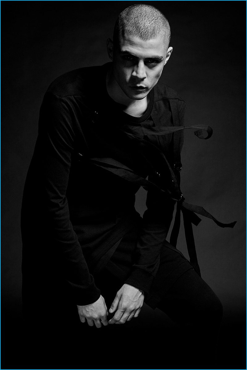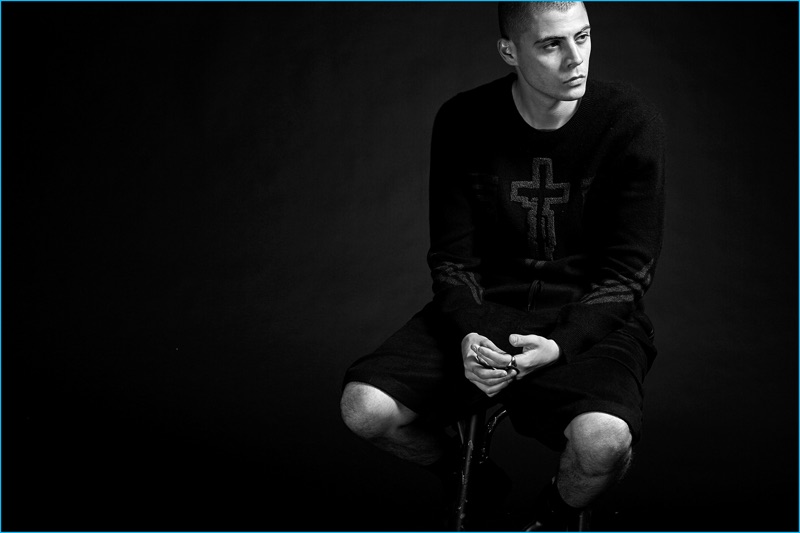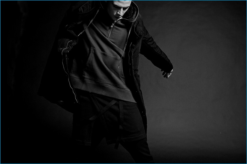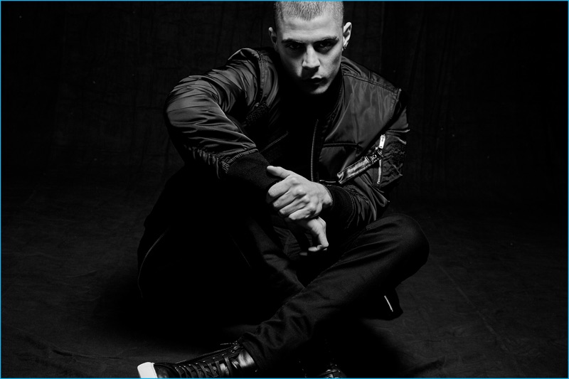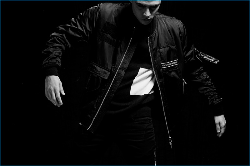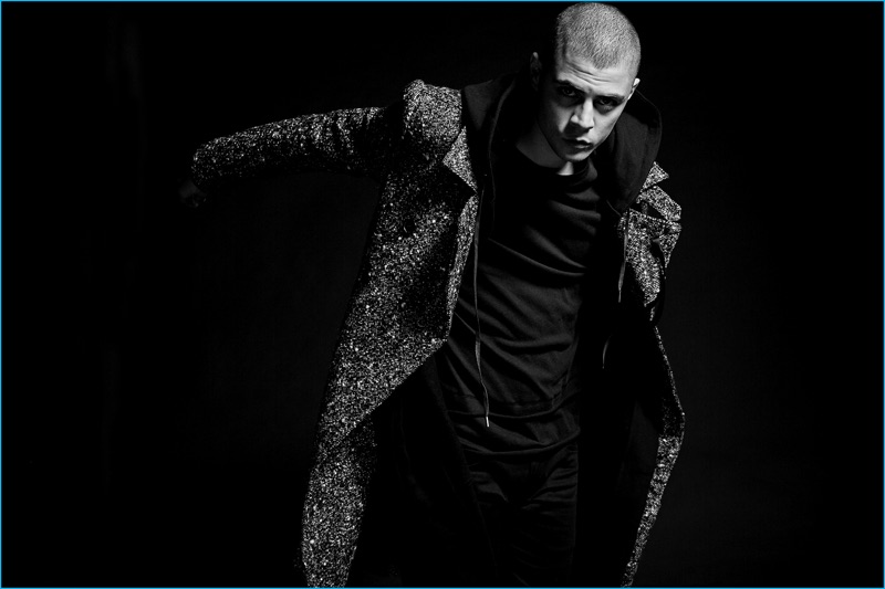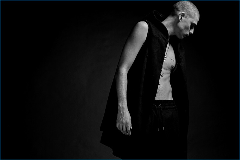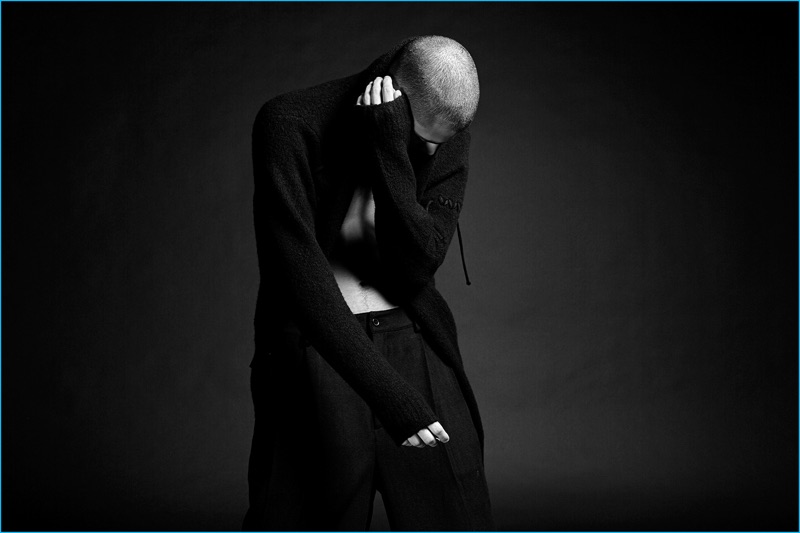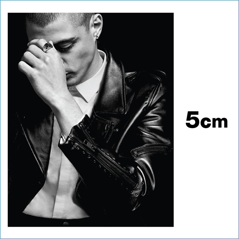 Following 5cm’s spring advertisements, photographer David Roemer (Atelier Management) and model Micky Ayoub reunite for the brand’s fall-winter 2016 campaign. Styled once again by Christopher Campbell (Atelier Management), Micky is front and center for moody black & white images. Exuding a confident cool, Micky dons a black wardrobe. 5CM’s featured fashions for the season include trendy items such as the bomber jacket, longline knit, oversized single-breasted coat, and leather biker jacket. / Grooming by Riad Azar (Atelier Management).