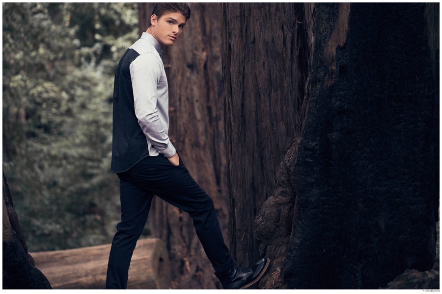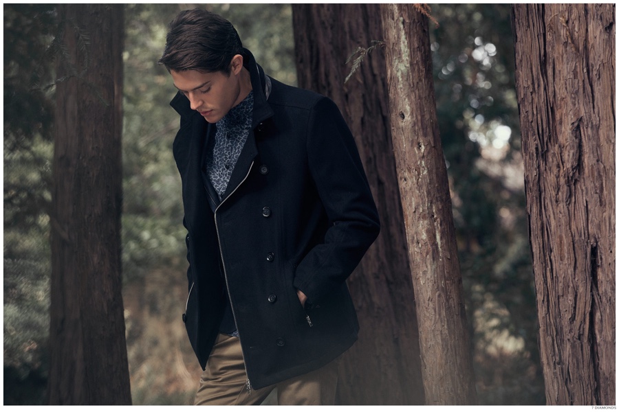 Embrace the Wilderness-Fashion brand 7 Diamonds embraces the free spirit of the outdoors, heading into the woods for its fall-winter 2014 campaign lensed by photographer Frankie Batista. Among this season’s stylish protagonists are models Cesar Casier, Kris Koslop, Austin Victoria and Malik Khalil. Providing casual but polished visuals, 7 Diamonds highlights a fall offering of relaxed tailoring, dark rich hues and sharp silhouettes.
