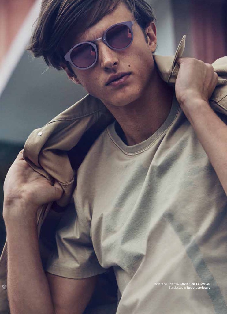 Abel van Oeveren is a cool vision in Retrosuperfuture shades with a t-shirt and jacket from Calvin Klein Collection.