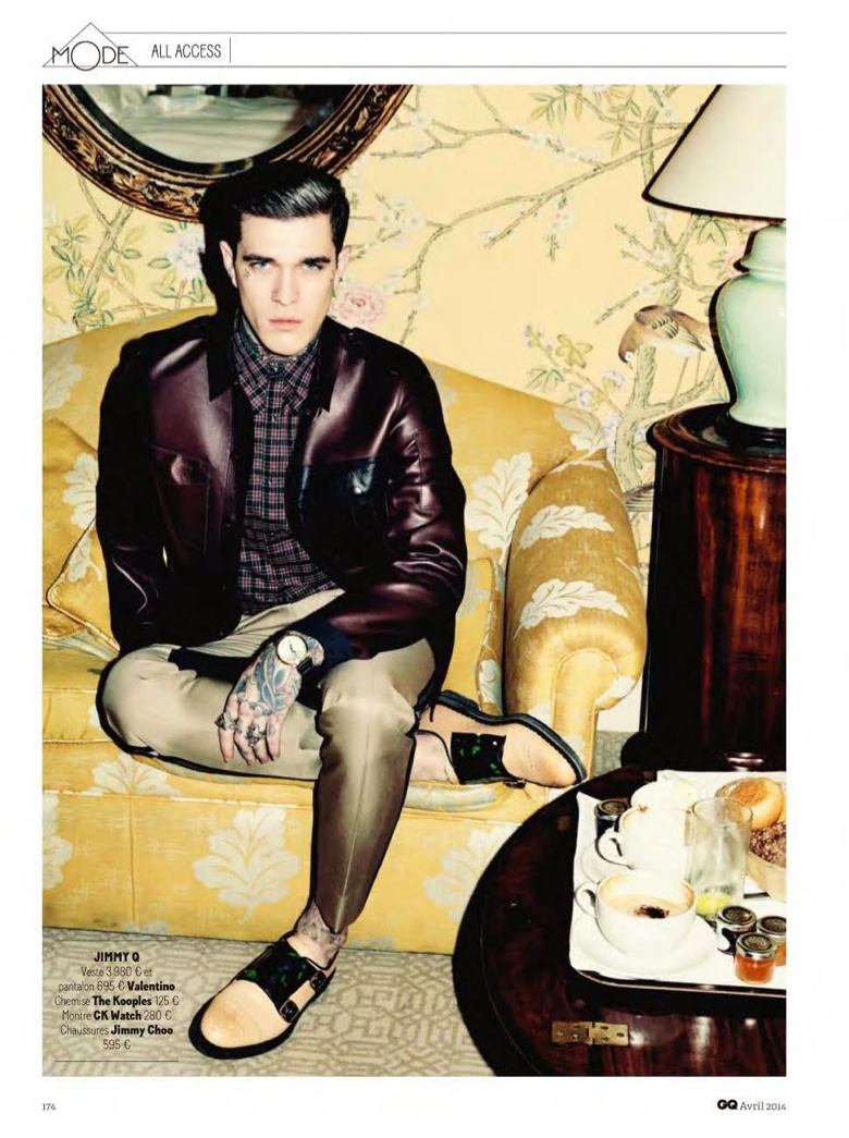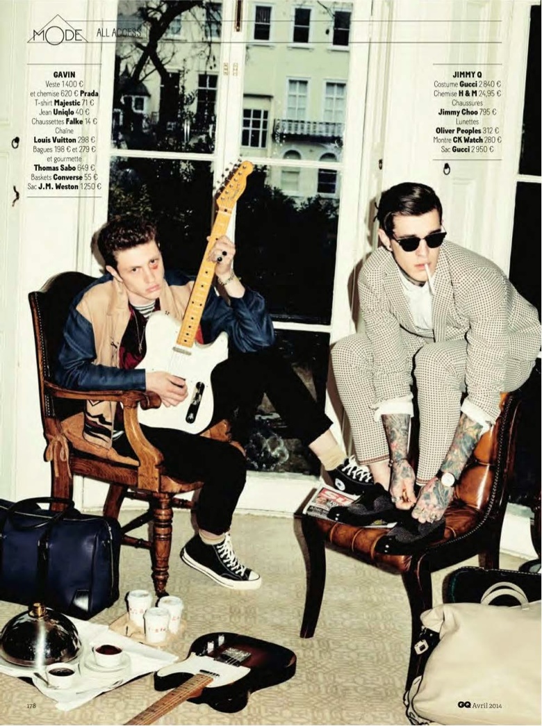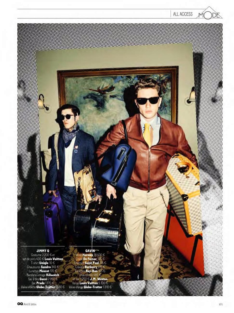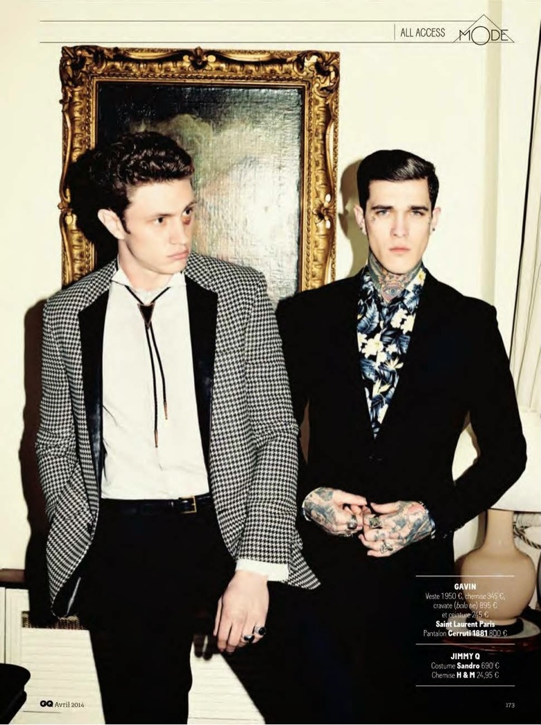 All Access–Photographed by Julian Broad for the April edition of GQ France, models Jimmy Quaintance and Gavin Jones embrace a retro rock ‘n’ roll style for an inspiring spread styled by Laetitia Paul. Captured on the road in the role of in-demand musicians, the boys sport cool looks from labels such as Sandro and Saint Laurent by Hedi Slimane. Paying attention to tailoring, sharp cuts and fine lines are at the center of the story with great jackets and smart trousers.