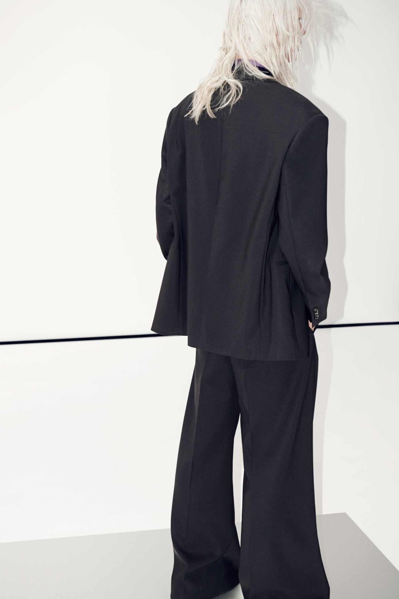 Fake Normal–Swedish label Acne enlists model Dylan Fosket for the new lookbook reveal of their spring/summer 2014 collection. Street culture, music and art inspire the collection which blends several decades together for what the label calls “fake normal style”. While the 1950s are explored with fantastic coats in a lightweight summer tweed, the 1970s are a bold hit with linen suits accented with gold and silver. Meanwhile leather jackets reflect the 1960s and cashmere sweaters pull Acne’s overall look together with a 1990s grunge reference. Overall featuring exaggerated proportions, seen in wide-cut trousers or slim shorts, the collection makes a definite statement, finally paying an homage to Swedish artist Hilma af Klint with artwork on scarves, shirts and more.