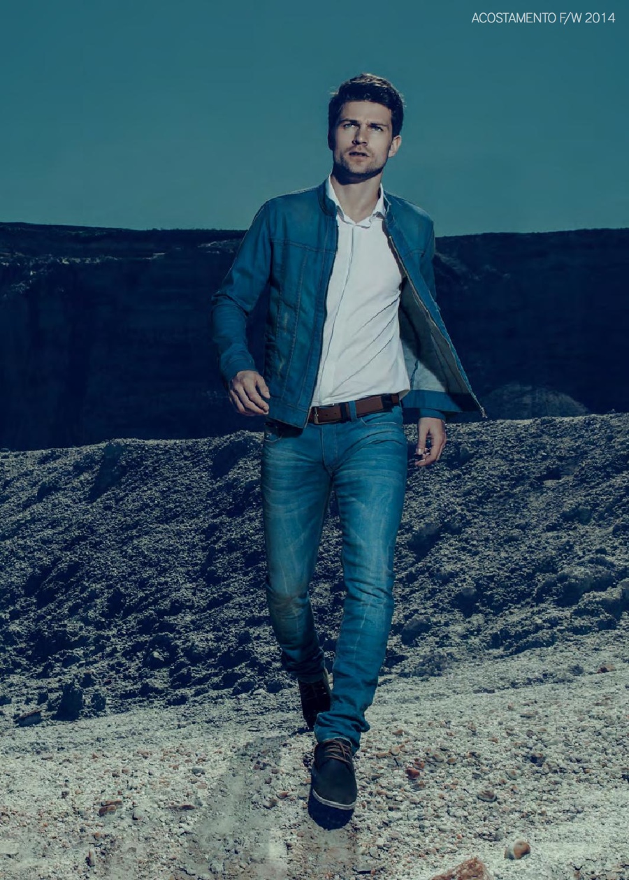 Acostamento Fall 2014-While Diego Miguel rocks colored jeans for Acostamento’s spring 2015 ad campaign, model Michael Camiloto embraces dark cool tones for the label’s fall 2014 outing. It’s all about comfort as everyday wardrobe staples contribute to Acostamento’s fall 2014 collection. Graphic t-shirts with black & white prints and images are worn with sports jackets. Add hooded pullovers and lightweight jackets to the mix for a sporty awakening. Shown alongside double denim ensembles, Acostamento’s man is guaranteed a casual season.