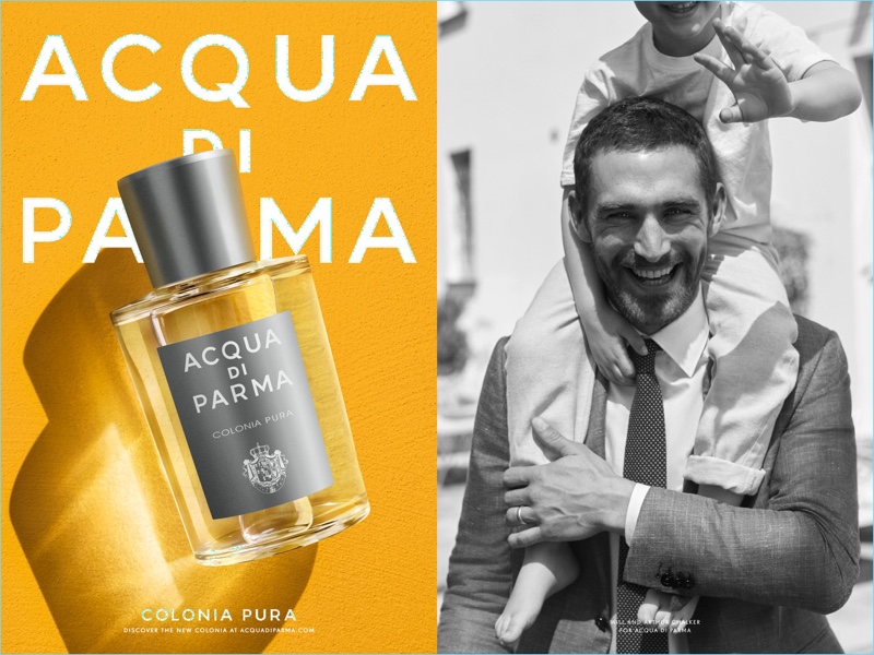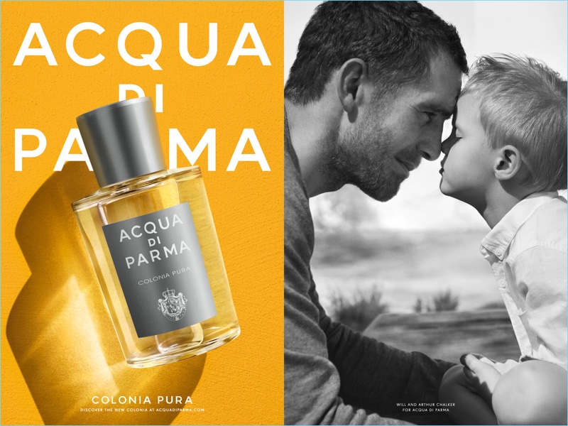 It’s a family affair as Acqua di Parma taps Will Chalker to star in its latest campaign. The leading British model brings his family along for the infectious advertisement. Connecting with photographer Josh Olins, Will, his son Arthur, and wife Chloe pose for charming pictures. Andrea Tenerani styles the outing, which features Will in tailored suits and chic sportswear.