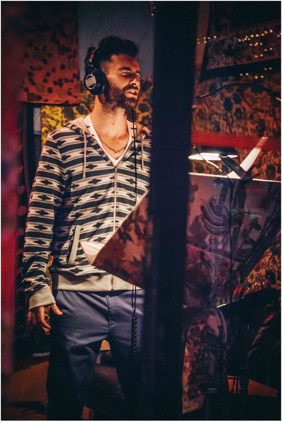 V-Today, Maroon 5 releases its fifth studio album ‘V’. Celebrating the launch, there is a new behind the scenes clip from Adam Levine recording the album. Jamming in the recording studio, Levine wore pieces from his K-Mart line. Talking about the tribal print hoodie he is seen wearing in one image, Levine shares, “I love this. The prints in the fall collection are probably my favorite. I’m really happy with the colors we went with.” Further, talking about the design process, Levine reveals, “I real enjoy the creative meetings, especially now that the collection has expanded into women’s and different product categories within the men’s line. It’s great being able to bounce ideas off of such an incredibly talented group of people who do this for a living. Also, I know this isn’t part of the design process, but every time I see a fan wearing a piece from the collection, it feels really rewarding.”