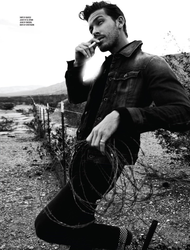 The American–After teasing our eyes with a video that announced a stunning editorial for the latest issue of DSection, leading model Adam Senn returns on our pages with these new images, shot by photographer Jack Waterlot for the Portuguese magazine. Playing the role of the silent cowboy, Adam is captured in a deserted setting and is styled by Lizette Pena in denim numbers, ribbed sweaters and leather boots. Exploring the rocky desert under a burning sun, Adam is definitely the epitome of masculine force, proving a great ability to adapt in every situation, without forgetting for this reason to an intriguing dose of charm. / Hair by Gareth Bromell (Atelier Management). Makeup by Diane DaSilva (Atelier Management).