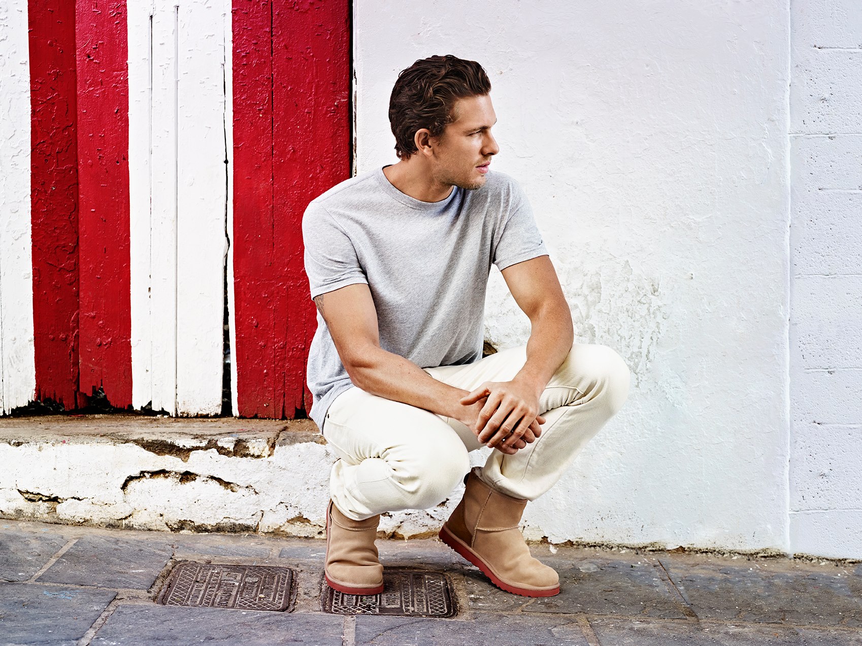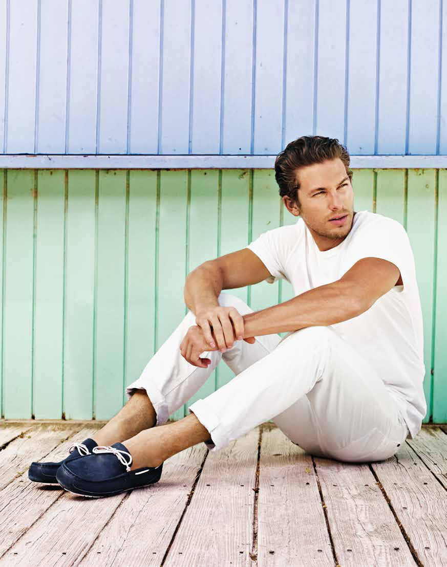 Ugg Summer 2014 Campaign-American model Adam Senn returns to the spotlight with the summer 2014 campaign of Australian label Ugg. Captured in a series of luminous daylight ads, the Dolce & Gabbana regular face embraces a relaxed wardrobe, made of basic cotton tees, white trousers and striped shorts, that capture the spirit of the brand’s relaxed summer offering.