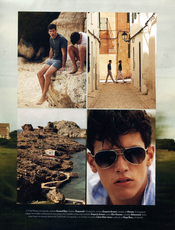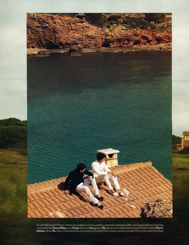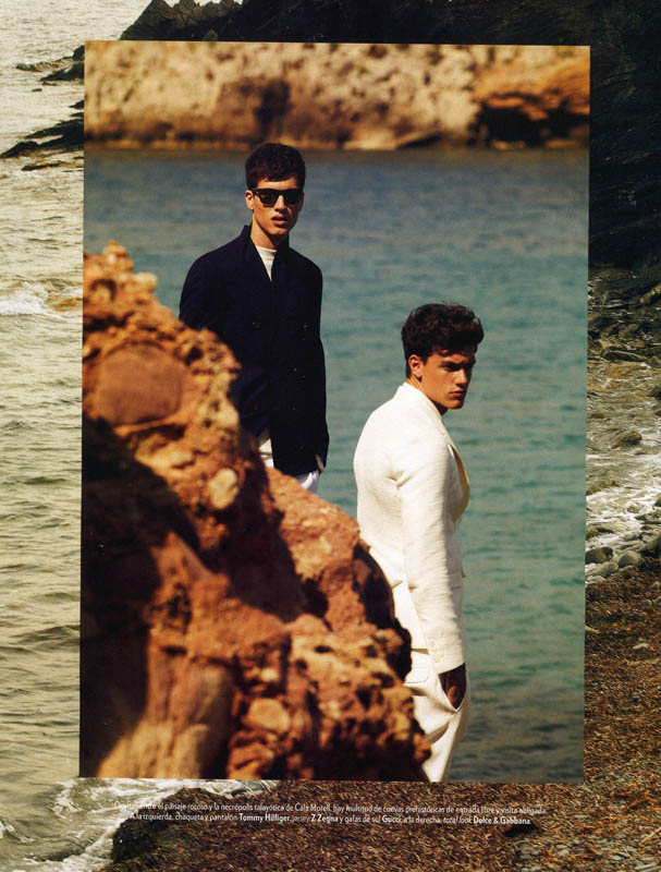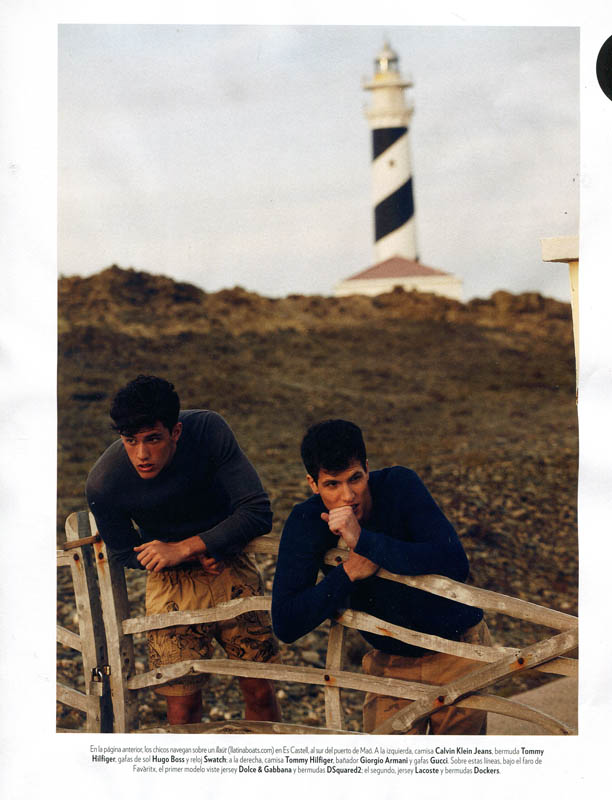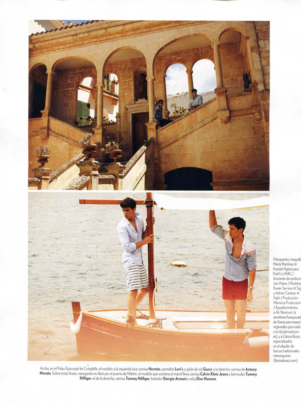 Summer Getaway-Sight Management models Adrian Cardoso and Xavier Serrano travel to Ibiza for the June edition of Spanish magazine Icon. Traveling and relaxing in style, the model duo are photographed by Nacho Alegre. Wearing loose open shirts, swim shorts, sandals and espadrilles, Adrian and Xavier are styled by Nono Vasquez.