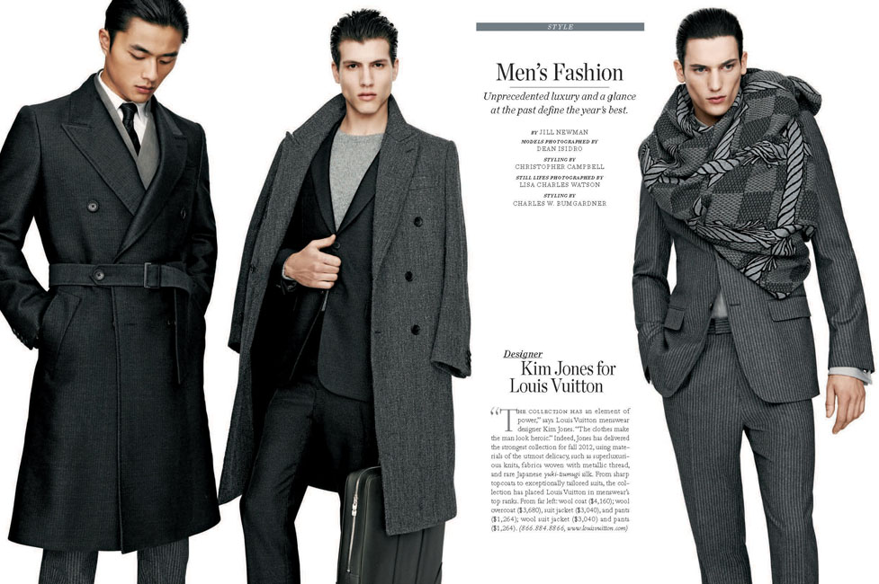 Luxe Life–Robb Report magazine takes a moment to look back and highlight pinnacle menswear collections within the past year. Models Adrian Cardoso, Hao Yungxiang, Zhao Lei and David Hundertmark suit up with Corneliani shirts, Stefano Ricci jackets, Brunello Cucinelli knitwear and much more, including collaborations from Kim Jones for Louis Vuitton and Alessandro Sartori for Berluti. Leading this tribute to luxury is photographer Dean Isidro while the Wilhelmina quartet is styled by Christopher Campbell. / Grooming by Walter Obal.