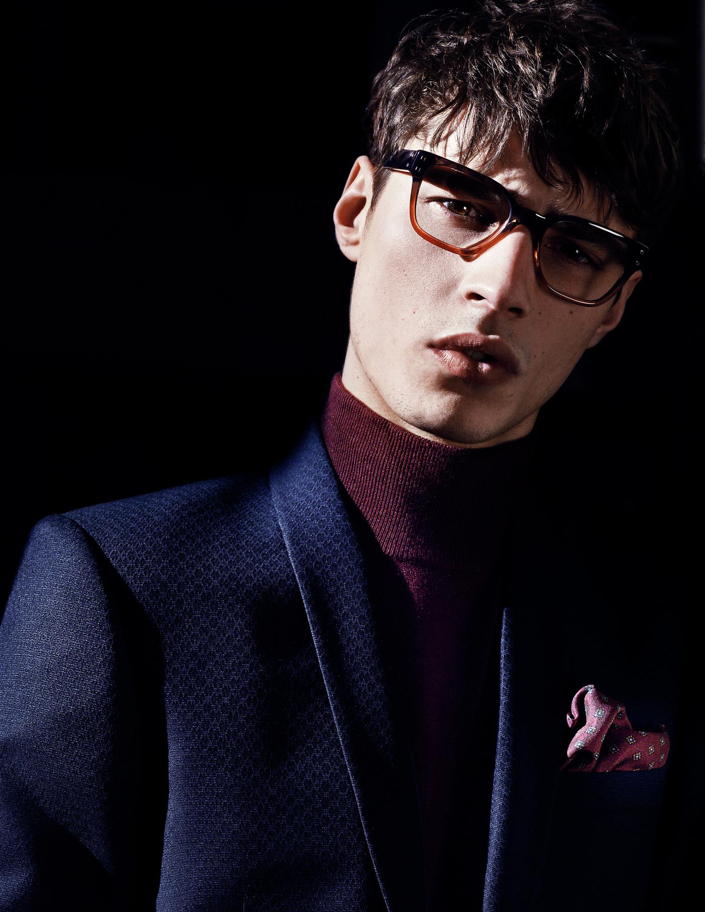 Fall Vision–After lending his intriguing features for Tiger of Sweden’s fall/winter main campaign, French model Adrien Sahores reunites with the brand to shoot its fall/winter 2013 eyewear campaign, shot once more by Hasse Nielsen. Embracing once more the mood of the main advertisements, Adrien poses in the shadows, wearing a textured jacket, paired with a soft burgundy turtleneck, while two-tone acetate sunglasses complete the look with their clean and essential design.