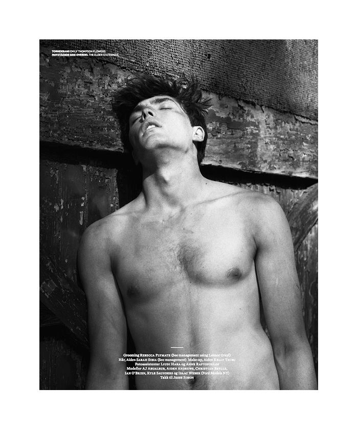 Matthew Kristall photographs Ford models AJ Abualrub, Aiden Andrews, Christian Brylle, Ian O’Brien, Isaac Weber and Kyle Saunders for Norwegian bi-annual SMUG. Styled by Priscilla Polley, Ford’s leading men shine in striking looks.