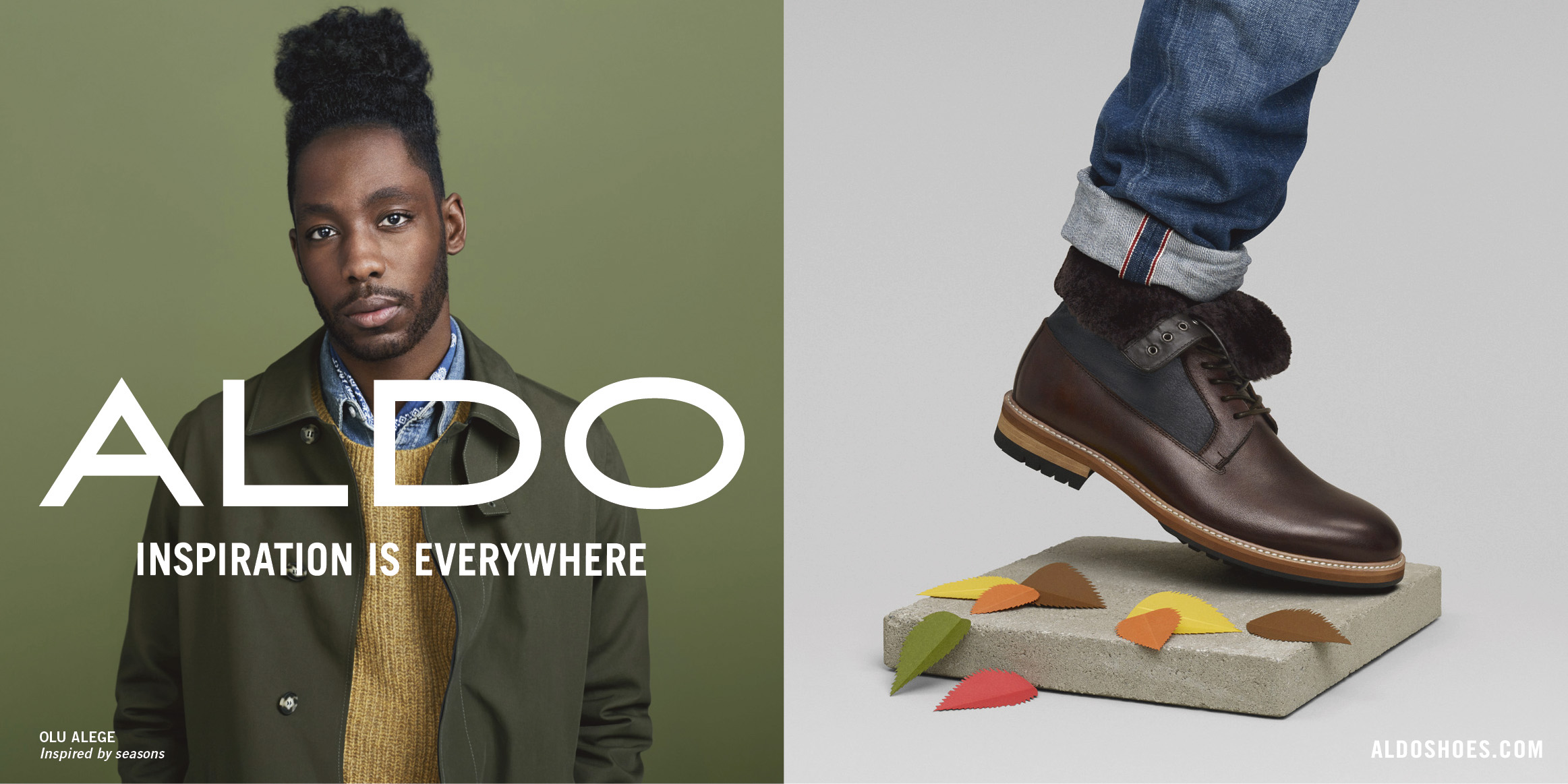 ALDO unveils its fall-winter 2015 advertising campaign, which features creative personalities. Tasked with presenting ALDO’s footwear in a personal fashion unique to themselves, DJ Will Power and community creative Olu Alege appears in the season’s first images. Power tackles travel with a hi-top sneaker, while Alege highlights boots with a seasonal theme.