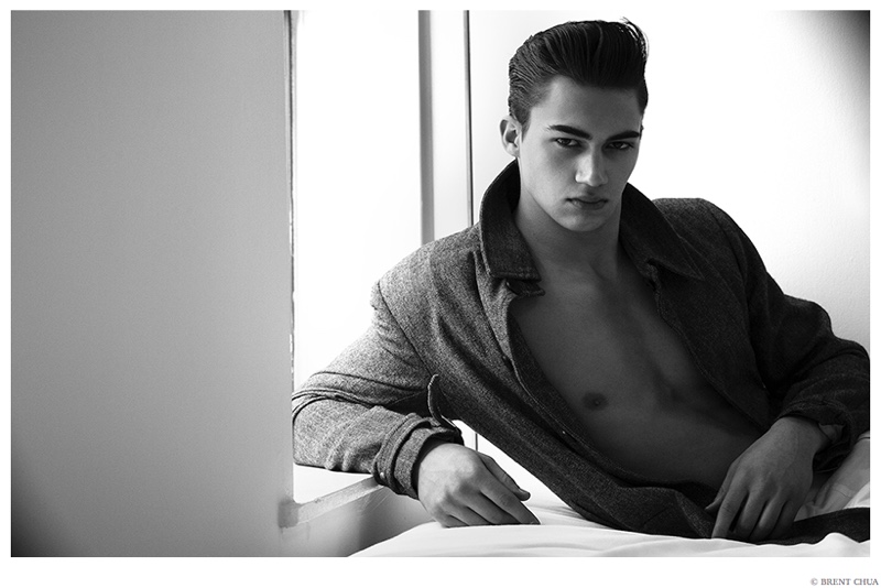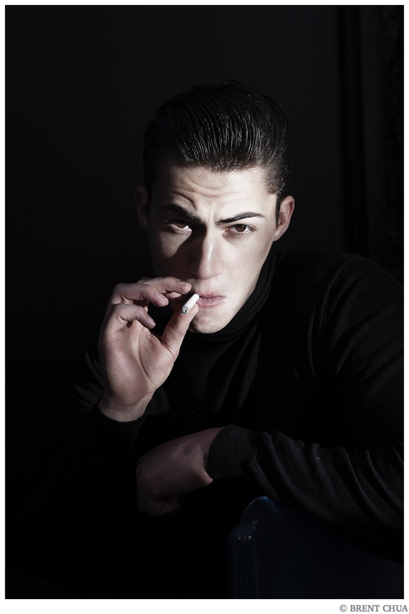 The star of spring-summer 2015 advertisements for both Givenchy and Dolce & Gabbana, model Alessio Pozzi sits for photos by New York-based photographer Brent Chua. Delivering a serious close-up as well as a casual shirtless image, Alessio has an apparent natural draw in front of the camera.