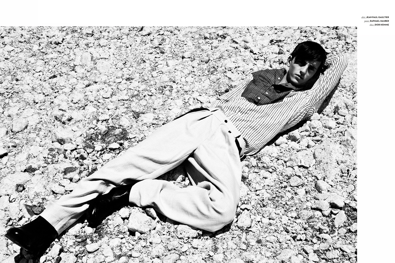 The Runaway–Select stunner Alex Dunstan chases freedom for Vision China’s August issue. Utilizing rugged nature as the backdrop, Arcin Sagdic captures Alex’s rough edge in a series of stark yet striking photographs. Stylist Bodo Ernie (Nina Klein) outfits the escapee in labels such as Kris Van Assche, Lanvin, and Hermes, playing with volume and rich textures for a sleek, modern wardrobe fit for the fearless runaway. / Grooming by Carina Wittmann. Hair by Sofie Uehla.