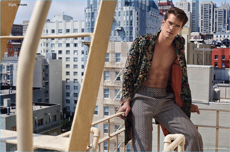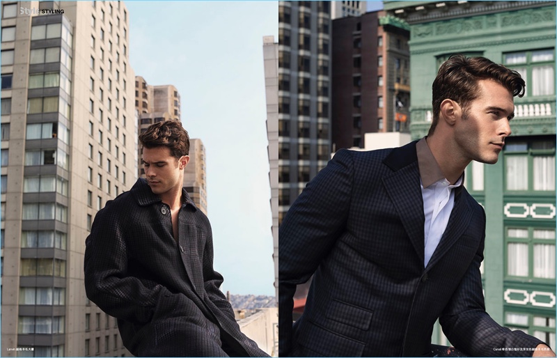 Olivia Tsang shows off her talents as photographer and stylist for a new story from Esquire Hong Kong. Tsang tackles fall fashions with a mix of fun details and classic tailoring. Here, Alex Prange is a standout in brands such as Gucci, Versace, and Lanvin. The Wilhelmina Los Angeles model inspires as he gravitates towards choice pieces, which include a floral print coat and micro dot trousers. / Grooming by Nicole Perez.