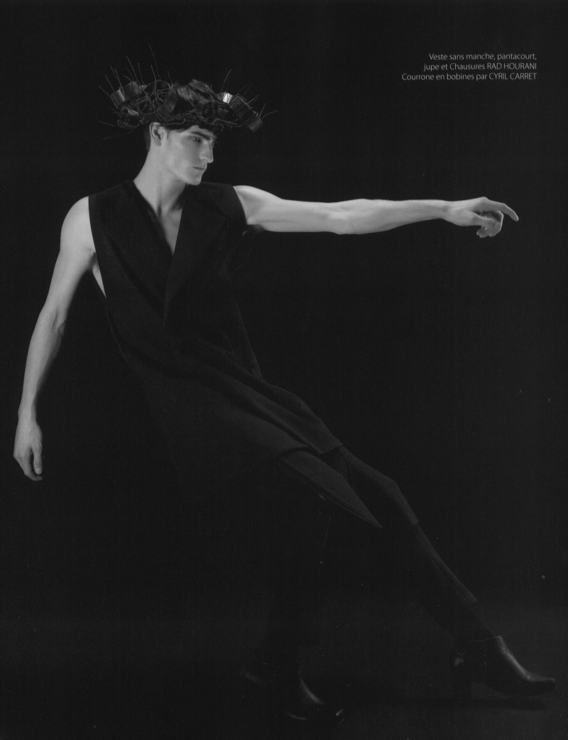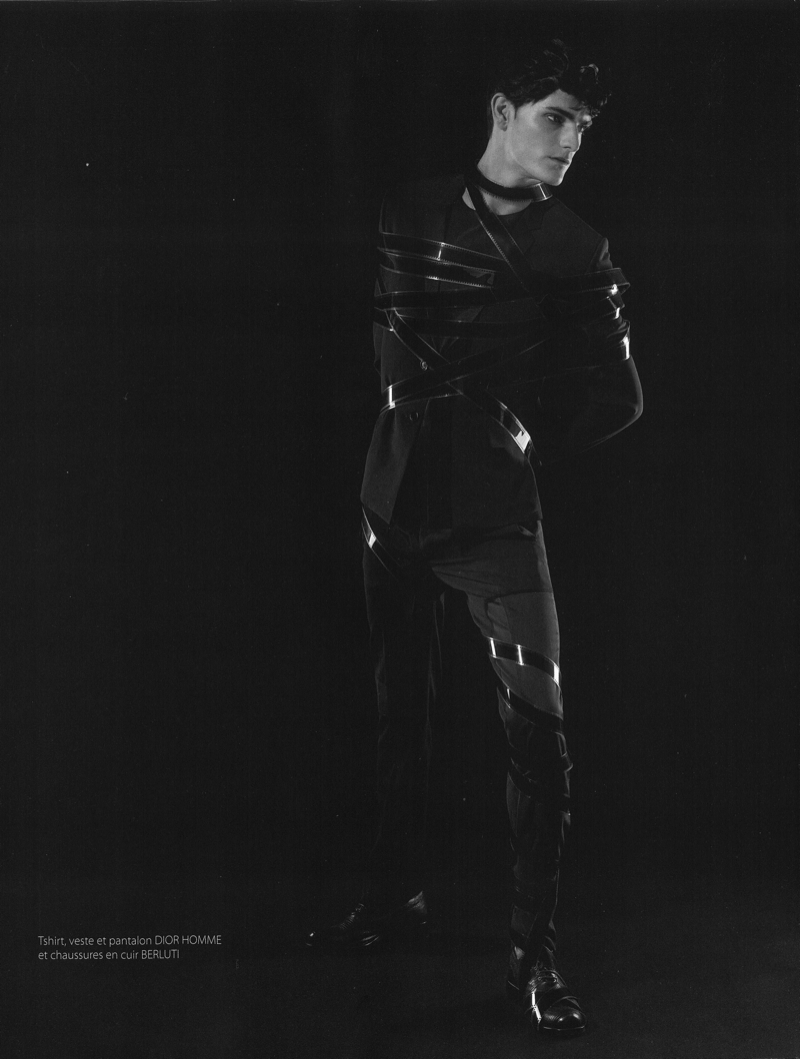 Twisted & Subjected–Photographed by Cyril Carret for the most recent issue of Apollo magazine, British model Alexander Beck sports a couple of looks that differ greatly from anything he’s ever worn. Turned into quite the eccentric personality, the Bananas model is restrained, given scissor hands and a lot more as he rocks dark severe looks pulled together by stylist Fleur Huynh Evans.