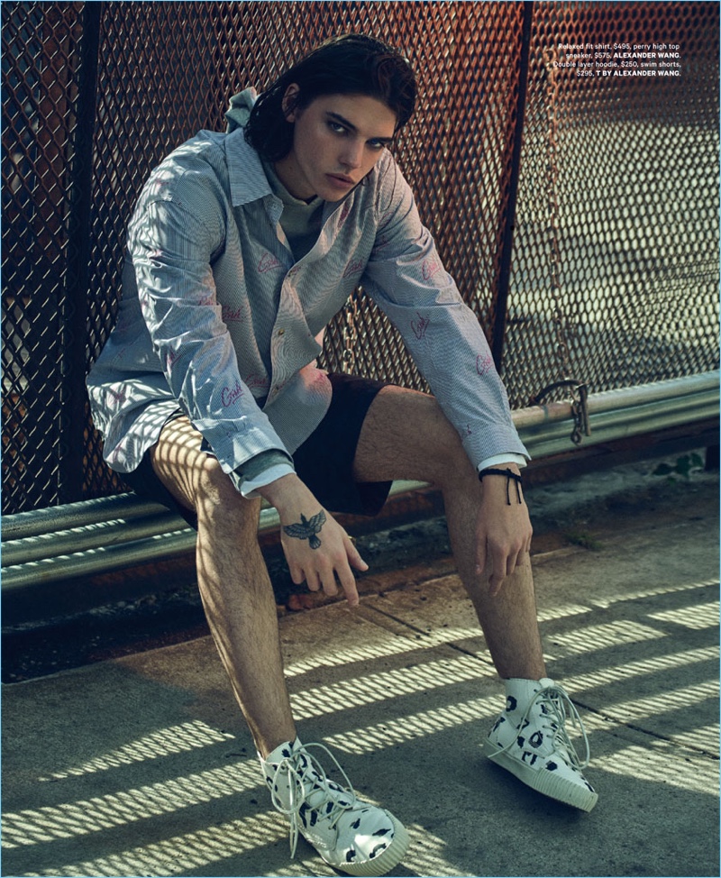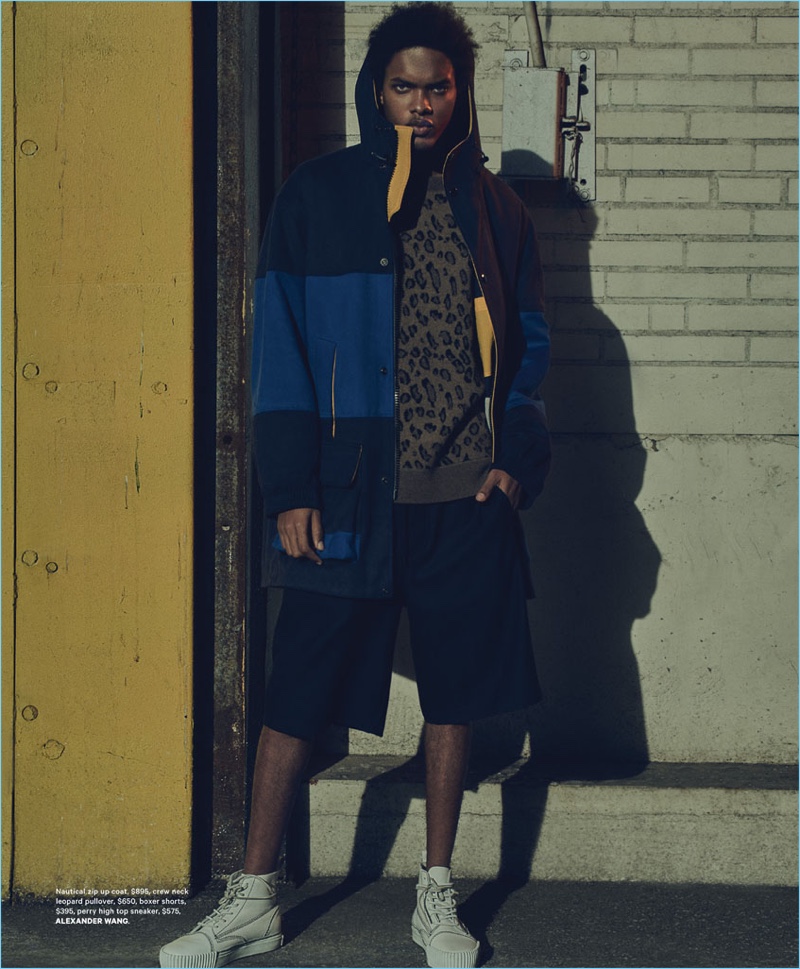 Brandon Bailey heads outdoors in a streetwear-inspired look by Alexander Wang.