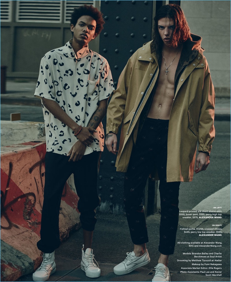 Kevin Sinclair photographs Charlie Berckmoes and Brandon Bailey in looks from Alexander Wang.