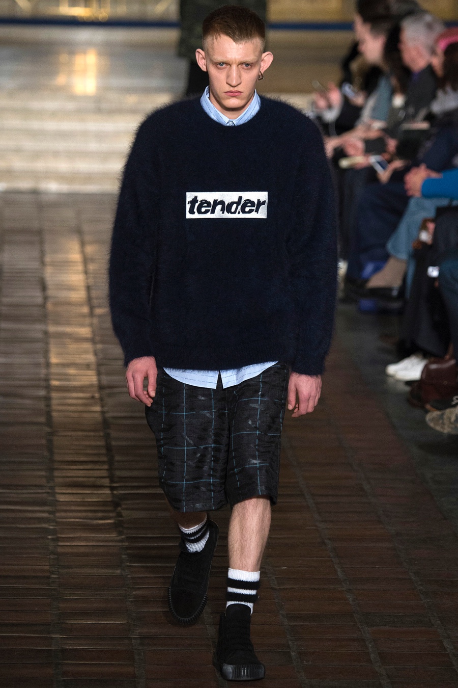 Often referenced in tracks by rappers such as A$AP Rocky (Fashion Killa) and Jay-Z (Suit and Tie), it was no surprise to see Alexander Wang reference Hip-Hop culture for his fall-winter 2016 men’s collection. His first namesake show since leaving Balenciaga, Wang unveiled a selection for the upcoming season during New York Fashion Week. Known for his streetwear-inspired aesthetic, Wang perfectly married rich fabrics such as mohair and shearling with a humorous take on the season. Sweaters featured silhouettes of strippers while logos reading tender payed tribute to streetwear brand Supreme.