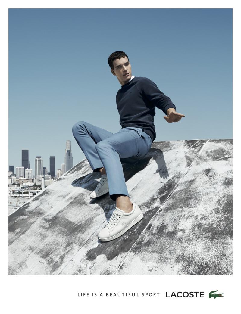 Brazilian model Alexandre Cunha fronts the spring-summer 2015 advertising campaign of French fashion brand Lacoste. Modeling the label’s ready to wear and eyewear, Alexandre is a sporty vision as he poses for the lens of photographer Jacob Sutton. Joined by beauty Drake Burnette, Alexandre is styled by Jay Massacret.