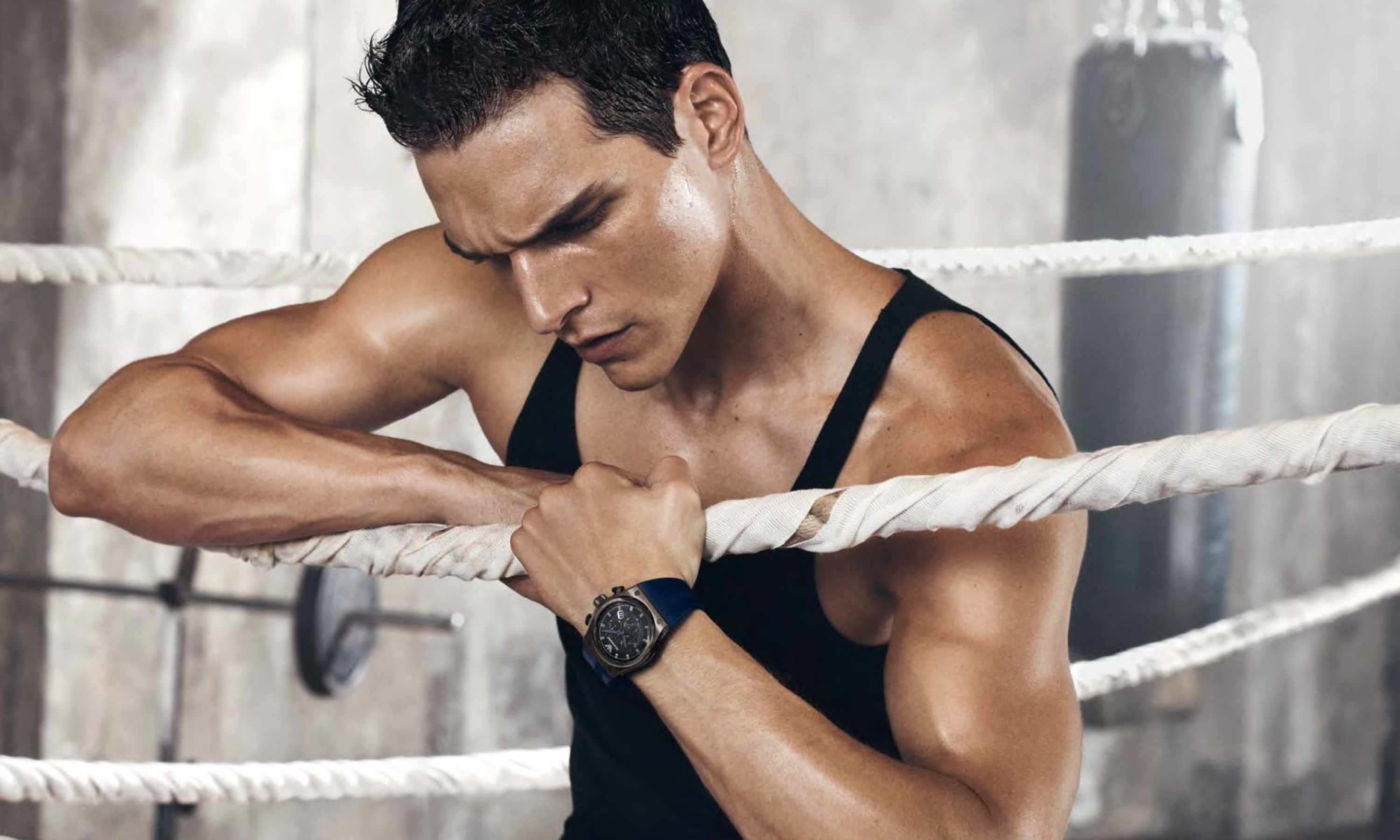 Important Details–To promote its newly launched collection of chronographs, Italian label Emporio Armani taps Brazilian model Alexandre Cunha. Captured inside a gym during a sweaty boxing workout, Alexandre never renounces to wear his favorite timepiece, which is an essential accessory that defines his dynamic and contemporary style, thanks to a modern design and hi-tech materials.