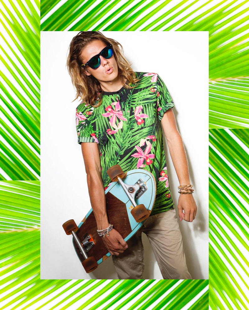 Introducing Jeff–Photographer Brandon Tabiolo brightens our day with a series of photos from Hawaii featuring model up and comer Jeff Hopkins. Stepping before Tabiolo’s lens, the Wilhelmina Hawaii model sports tropical prints and casual essentials as he plays to a laid-back skater image.