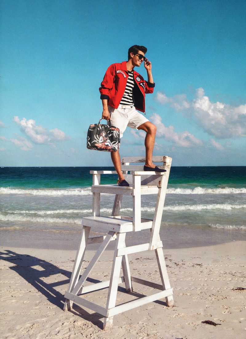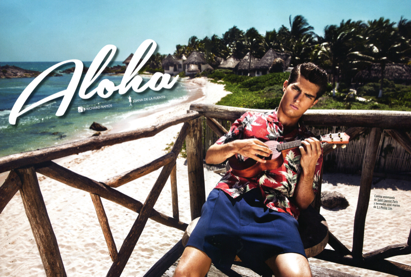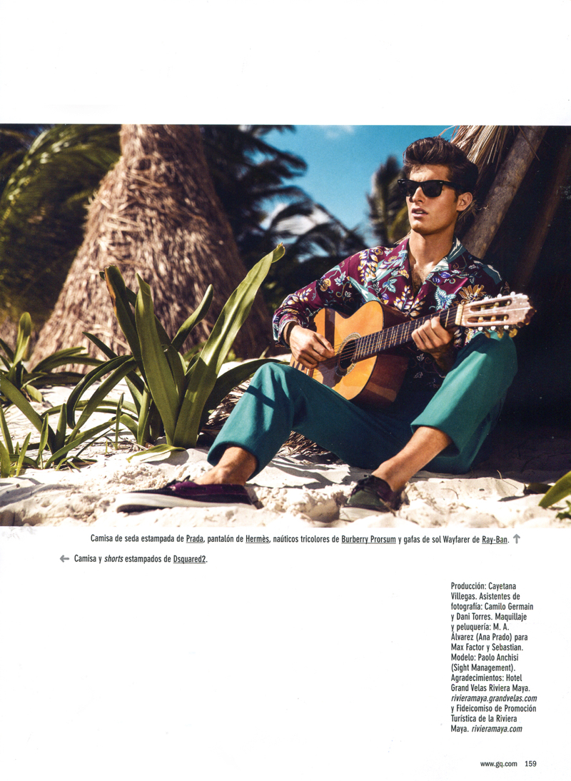 Aloha–Sight Management model Paolo Anchisi travels to Riviera Maya for a story in the latest edition of GQ España. Photographed on location by Richard Ramos, Paolo is outfitted by Joana de la Fuente. Capturing the essence of a matinee idol, Paolo is stunning in fun summer designs from the likes of Prada and Saint Laurent.