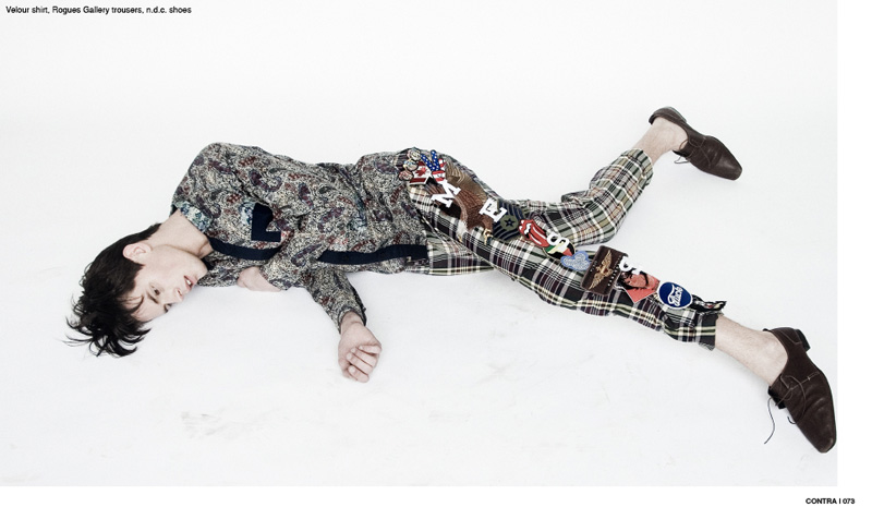 Jason Poisson reunites with photographer McKenzie James for the debut menswear issue of online magazine Think CONTRA. Styled by Shea Hurley for a tongue-in-cheek editorial inspired by athletics, Jason demonstrates that rare charm that enables him to easily pull off some of the most trying ensembles.