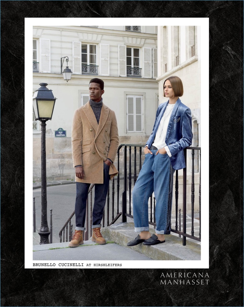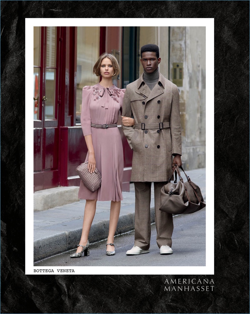 Showing a penchant for travel, Americana Manhasset travels from California to Paris. The shopping and dining destination rounds up quite the number of covetable looks for the Parisian holiday. Models Salomon Diaz and Brigit Kos couple up for the occasion. Taking in the City of Love, Salomon rocks head to toe looks from brands like Salvatore Ferragamo, Bottega Veneta, Louis Vuitton, Rag & Bone, and more.