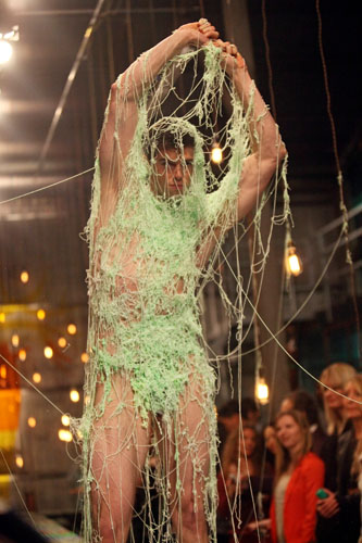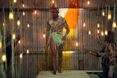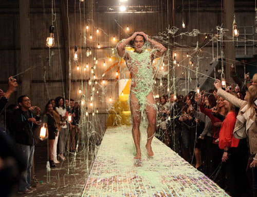 The final fourteen contestants moved into their new home tonight, but before there was time for drama to start, they had to hit the runway in nothing but silly string. Surprisingly, no one had a problem with getting naked. Likely, it’s established now that if you’re going to model, there’s the chance you may have to strip down. The winner of the challenge and thus the Tyra Suite (did we mention that there were baby pictures of Tyra in the suite?) was Keith, who decided to share the room with Kari. Meanwhile, Mirjana who cuddled with Matthew, turned out to have a boyfriend. Drama!