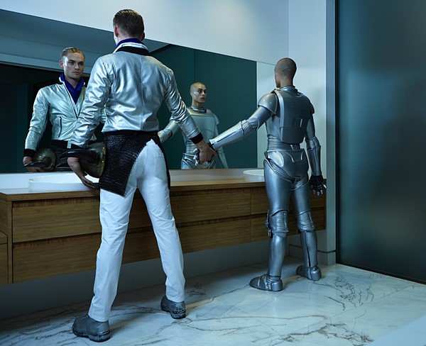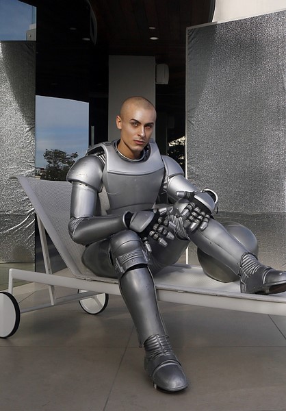 Last season's contestant Cory returns as the photo shoot's androgynous robot. Pin