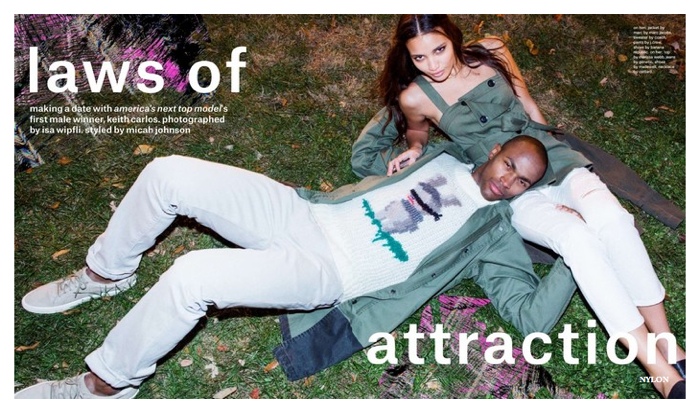 The first male winner of America’s Next Top Model, Keith Carlos collects on one of his awards, a spread in Nylon. Appearing in the magazine’s February 2015 edition, Keith stars in a his ‘n’ her fashion story, just in time for Valentine’s Day. Shot by photographer Isa Wipfli, Keith is outfitted by stylist Micah Johnson.