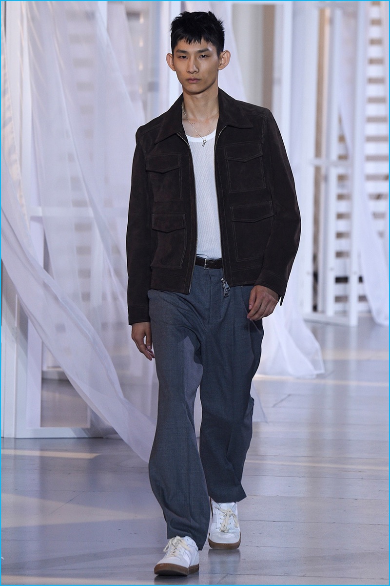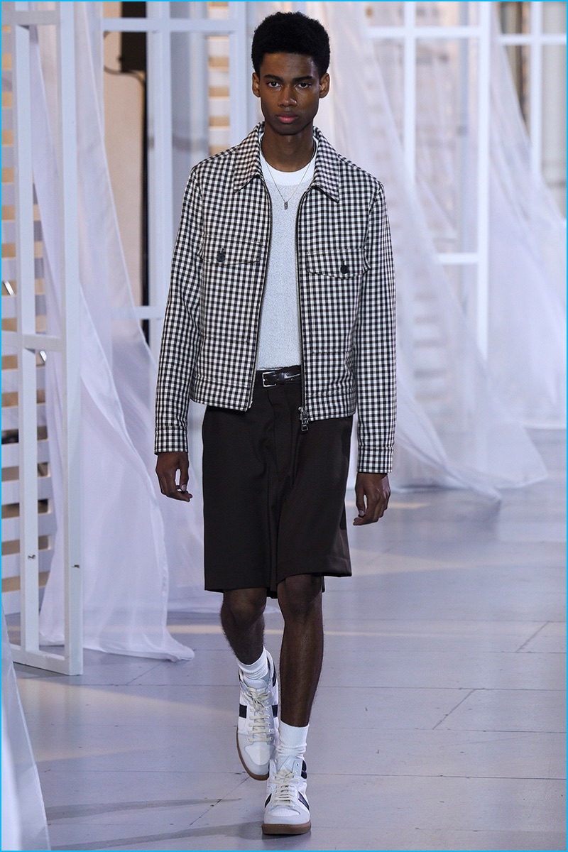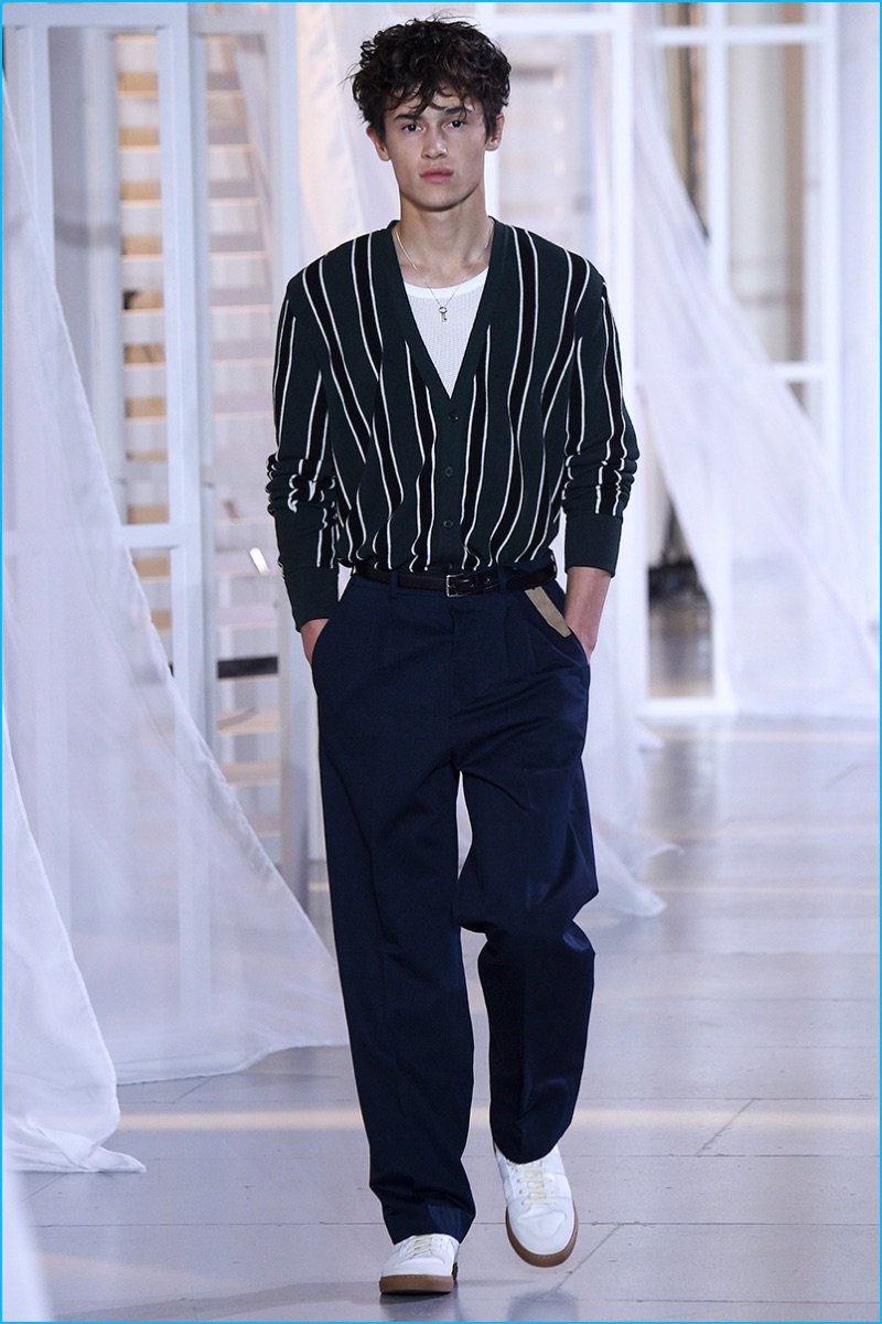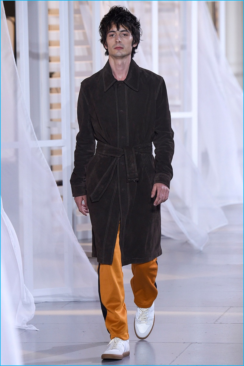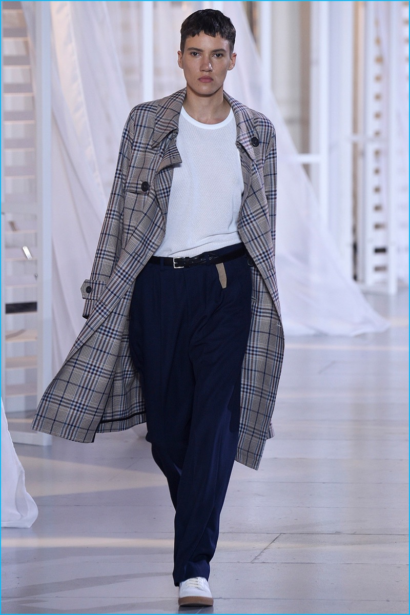 Designer Alexandre Mattiussi contributes an effortless attitude to spring-summer 2017. Ami’s latest collection celebrates Parisian style. The fashion brand’s man represents the Parisian lover this season. A certain ease resonates with a lineup of relaxed proportions. Slouchy trousers, crisp white sneakers, solid bomber jackets, lightweight check coats, retro-style button-down shirts and half-zip pullovers highlight Mattiussi’s practical point of view. Season after season, the designer effortlessly balances contemporary silhouettes with a laid-back approach to style. Spring is no different. The tracksuit rounds out the season with a cheeky but enviable cool.